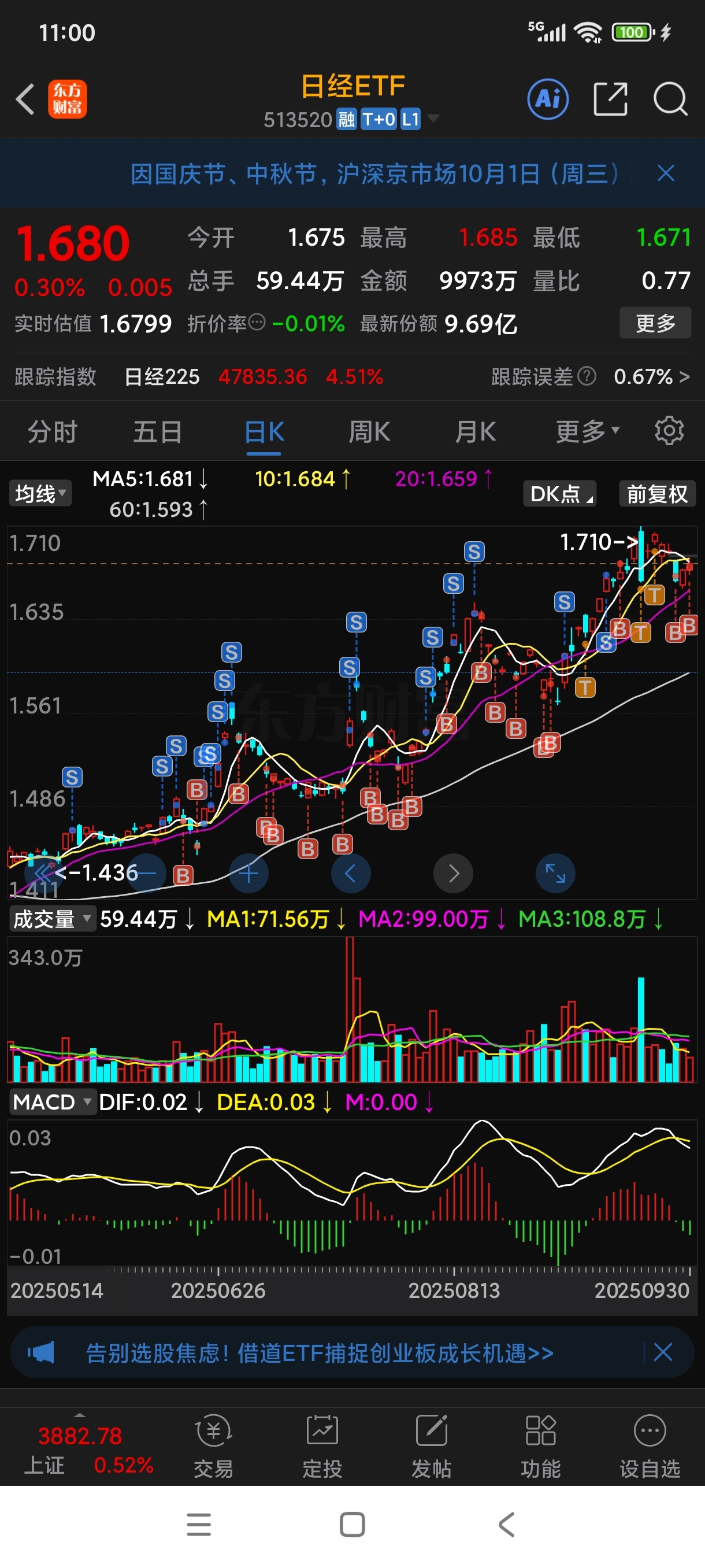 $日经ETF(SH513520)$ 这个跌几天就涨,适合做t