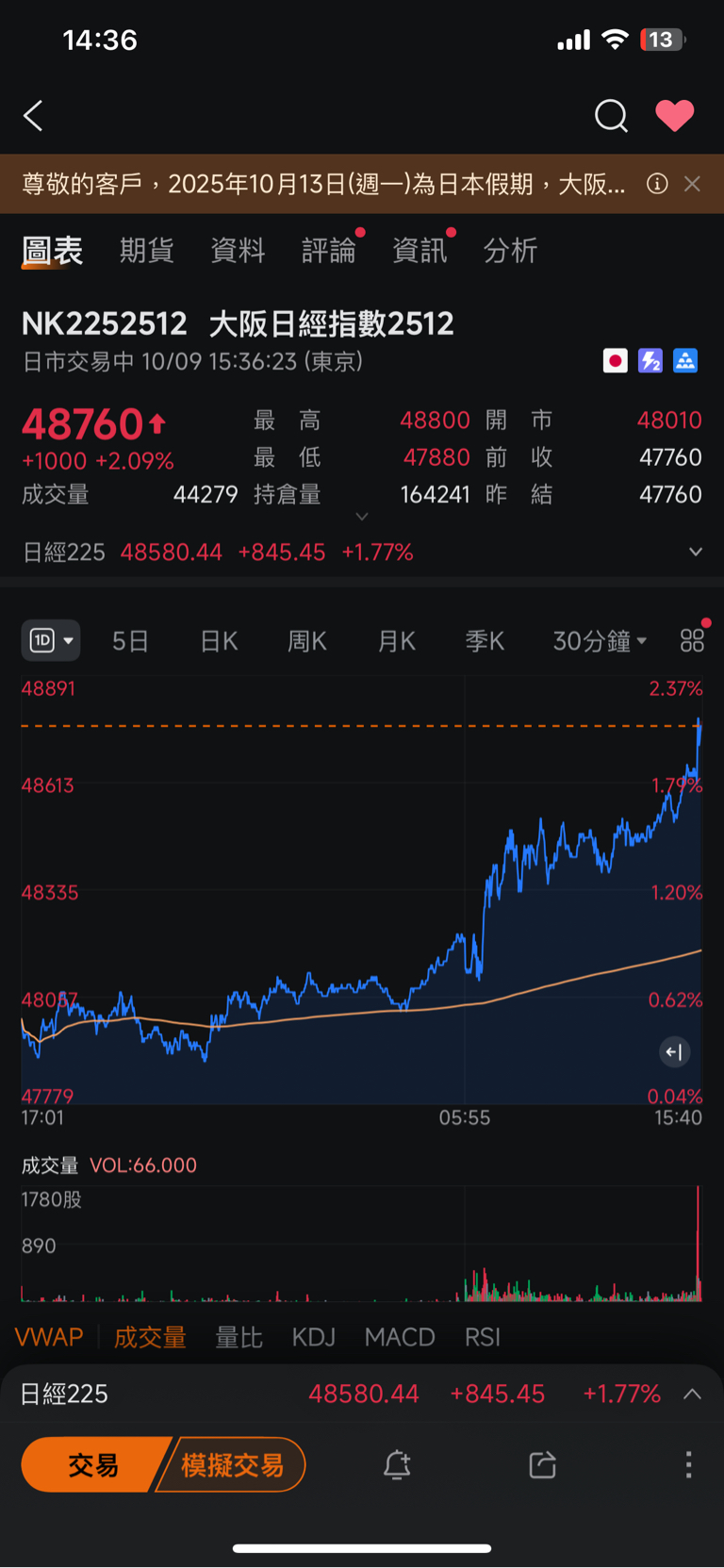 $日经ETF(SH513520)$ 收盘后期货继续上涨0.3%(1.7上涨到2.0)基金跟涨