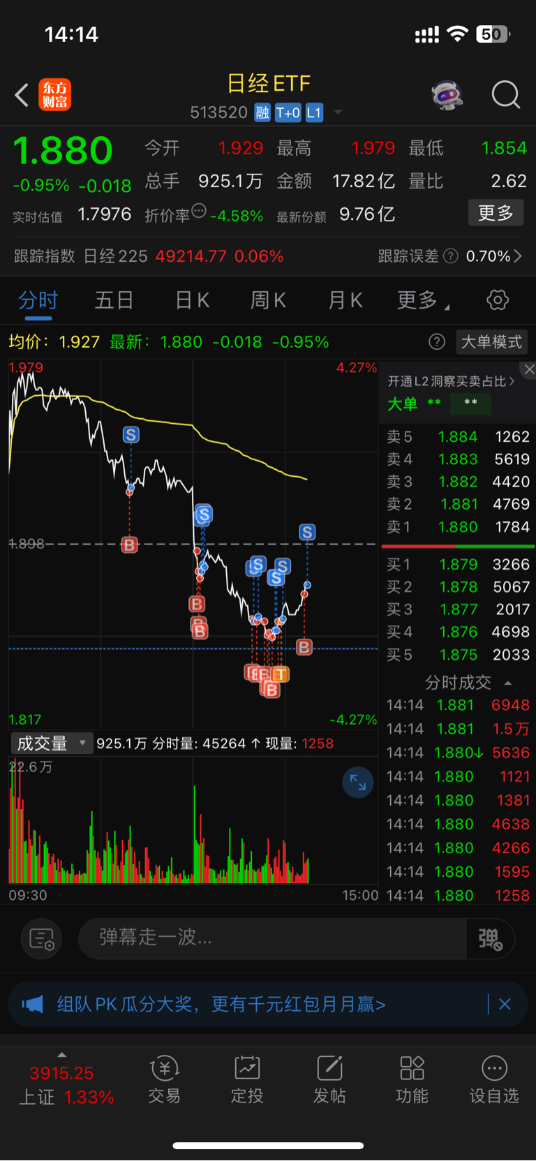 $日经ETF(SH513520)$ 我就只做秒杀价