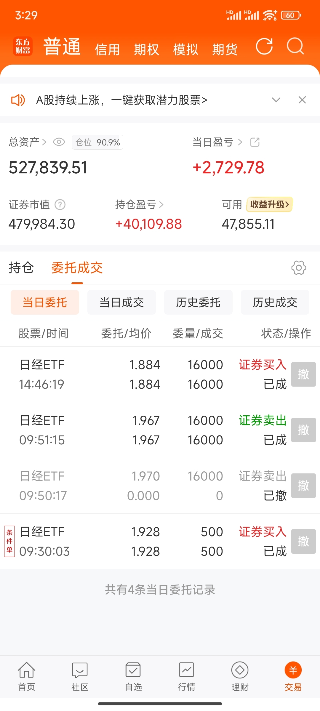 $日经ETF(SH513520)$ 定投第186天,买入日经500股,今日盈亏+2729,总盈亏+40109。#炒股日记# #复盘记录# #实盘记录# #周末杂谈# #投资干货#