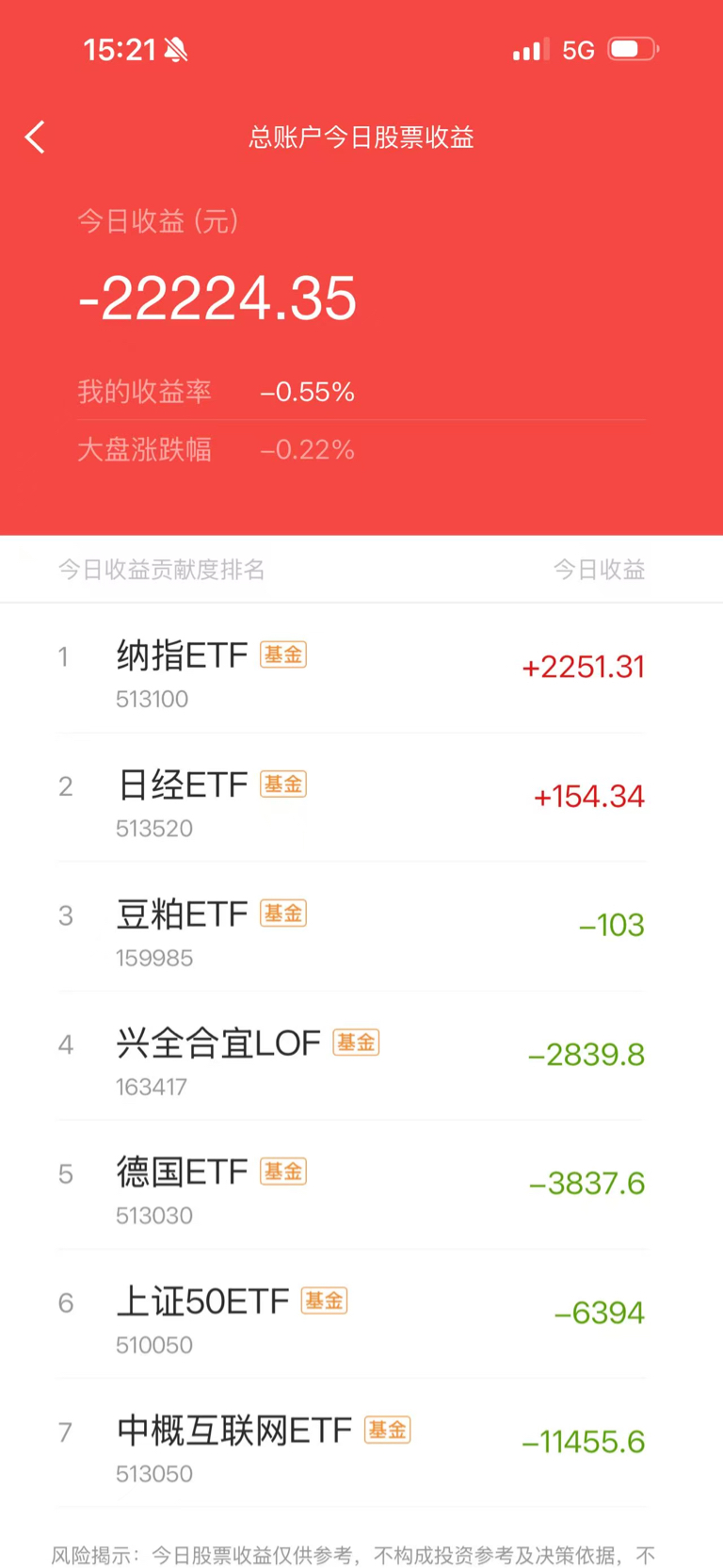 定投第2654天,今日买入日经ETF2900股,今日盈亏-2.22万元,累计盈亏+418万元,静待花开~(实盘,原创,无小号)