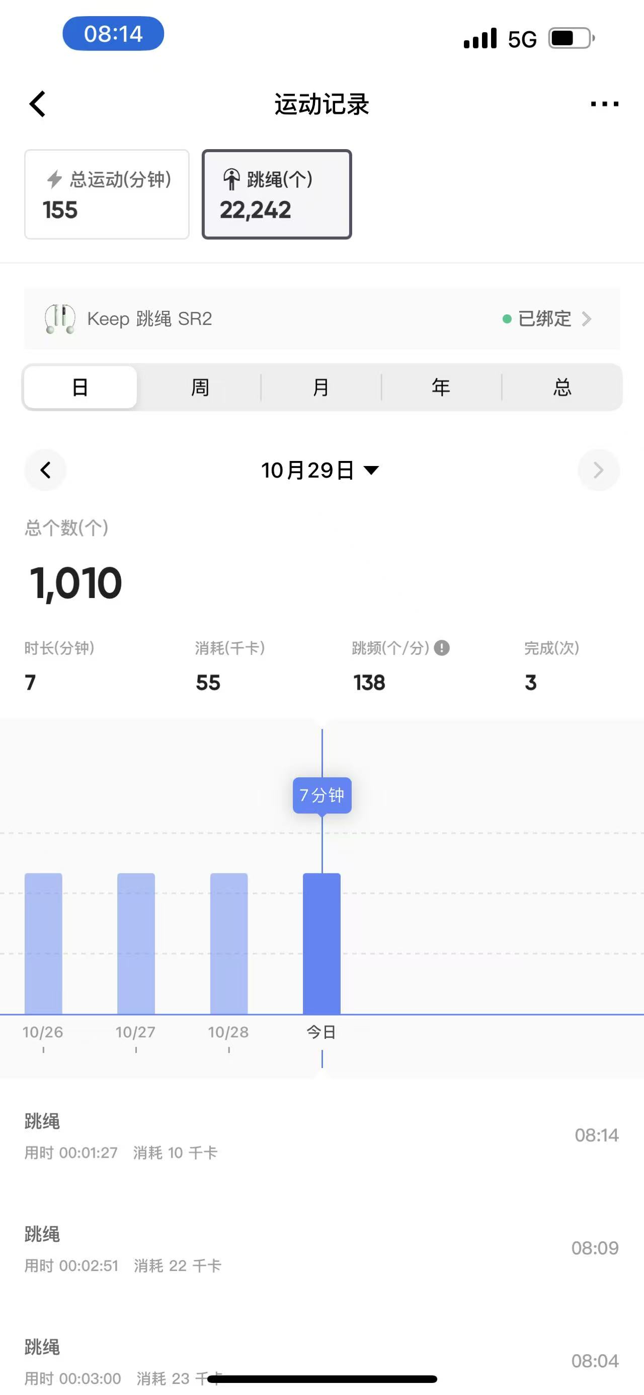 跳绳:1000个,累计跳绳:2072831个