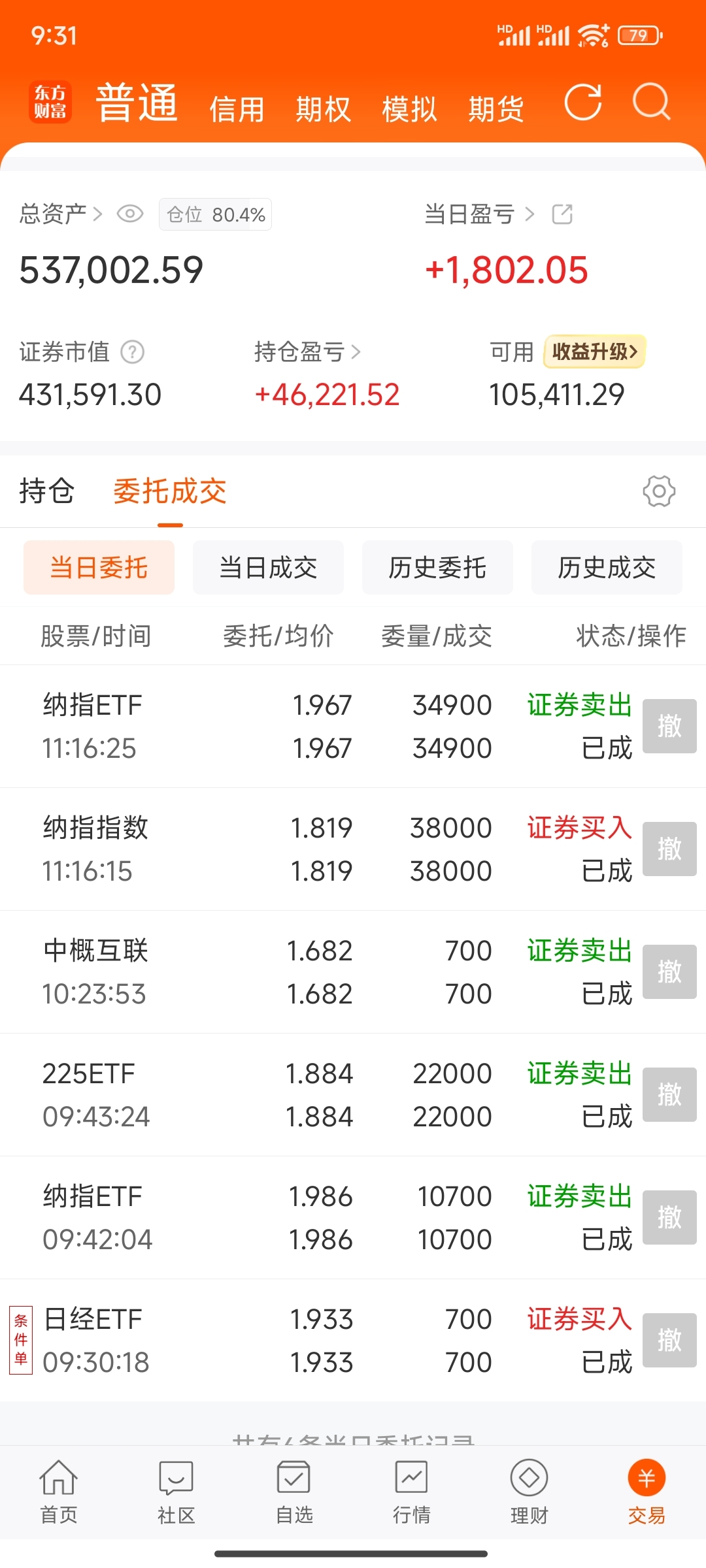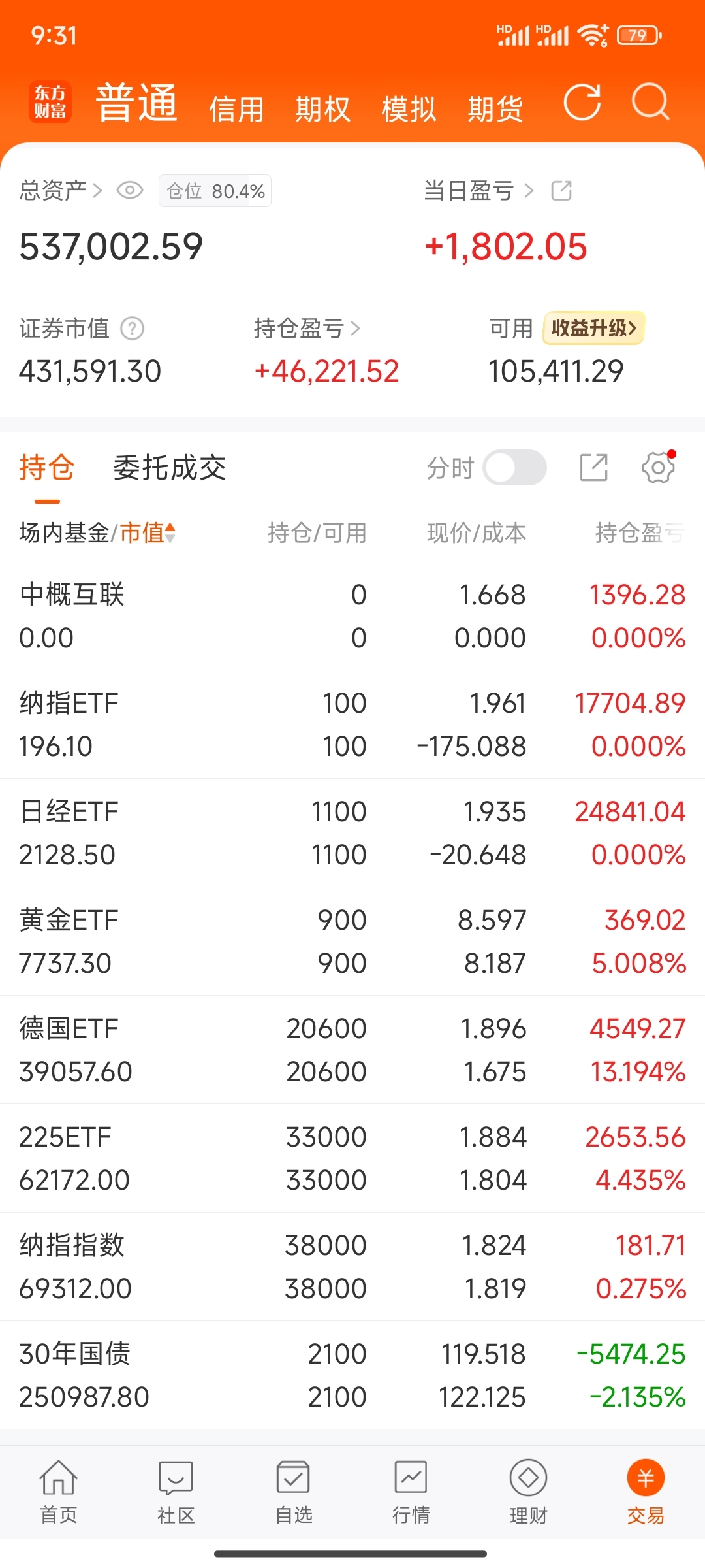 $日经ETF(SH513520)$ 定投第193天,买入日经700股,卖出日经22000股,卖出纳指10700股,今日盈亏+1802,总盈亏+46221。#炒股日记# #复盘记录# #强势机会# #实盘记录# #投资随笔#