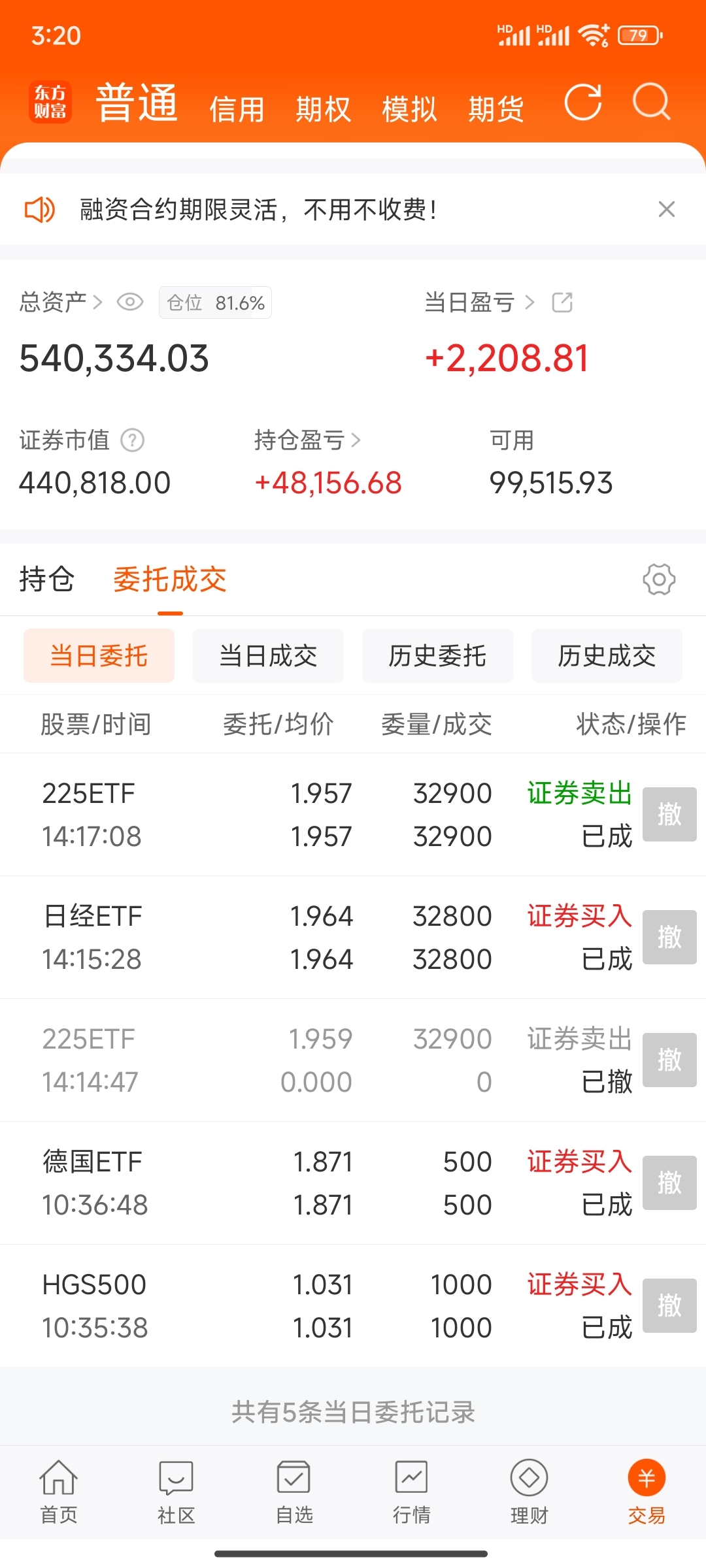 定投第196天,买入德国500股,沪港深500ETF1000股,今日盈亏+220