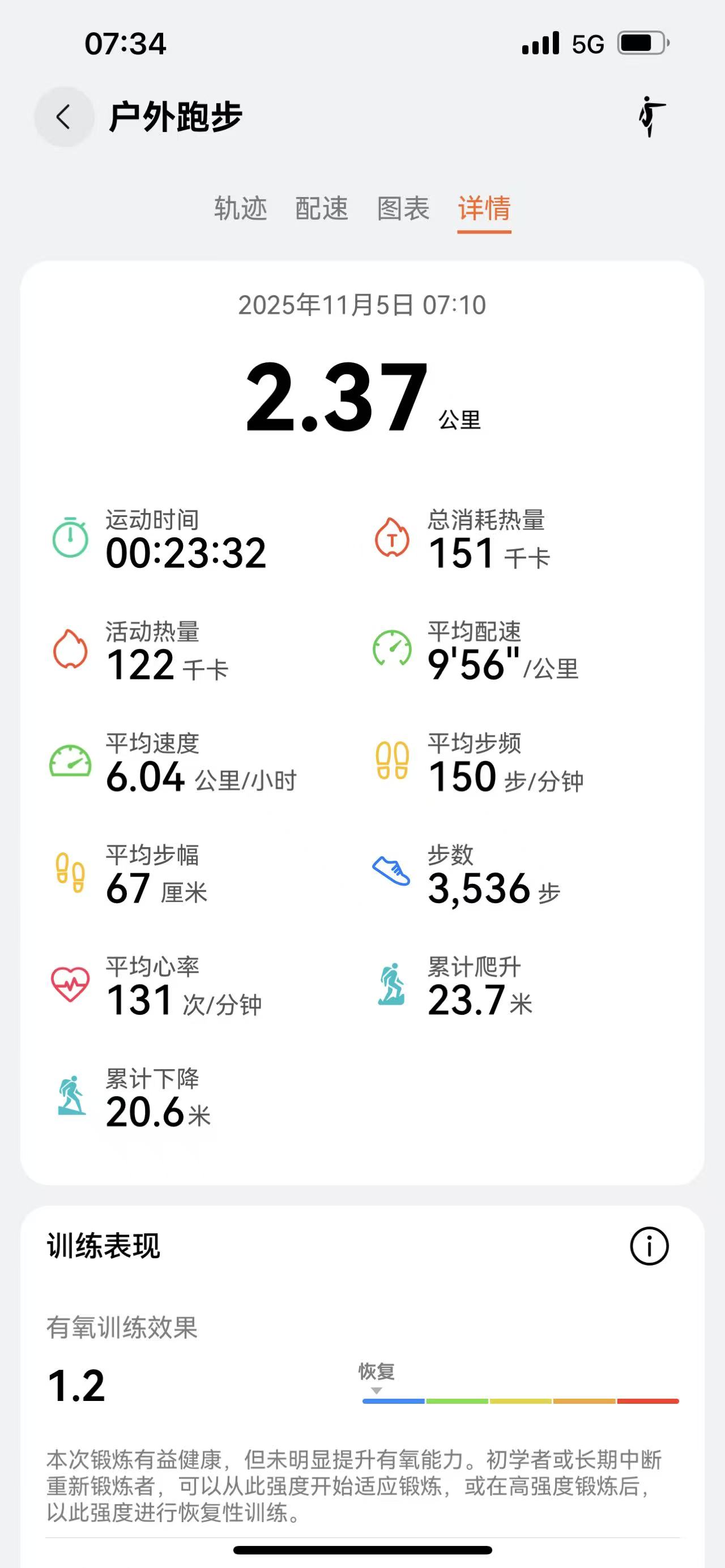 慢跑:2.37公里,累计慢跑:1141.39公里
