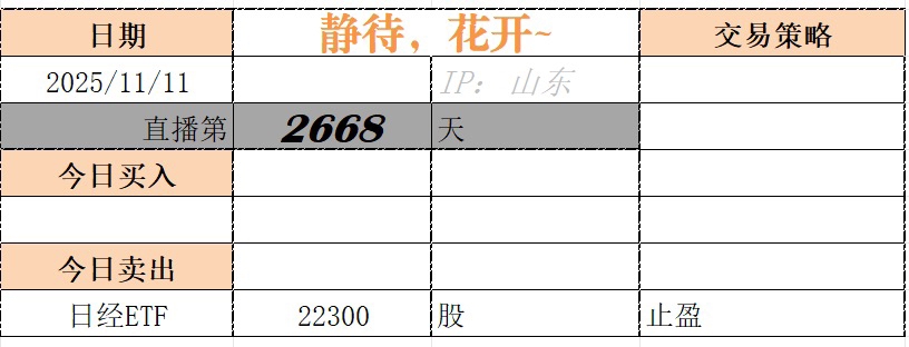 定投第2668天,今日卖出日经ETF22300股,今日盈亏-1.57万元,累计盈亏+413万元,静待花开~(实盘,原创,无小号)