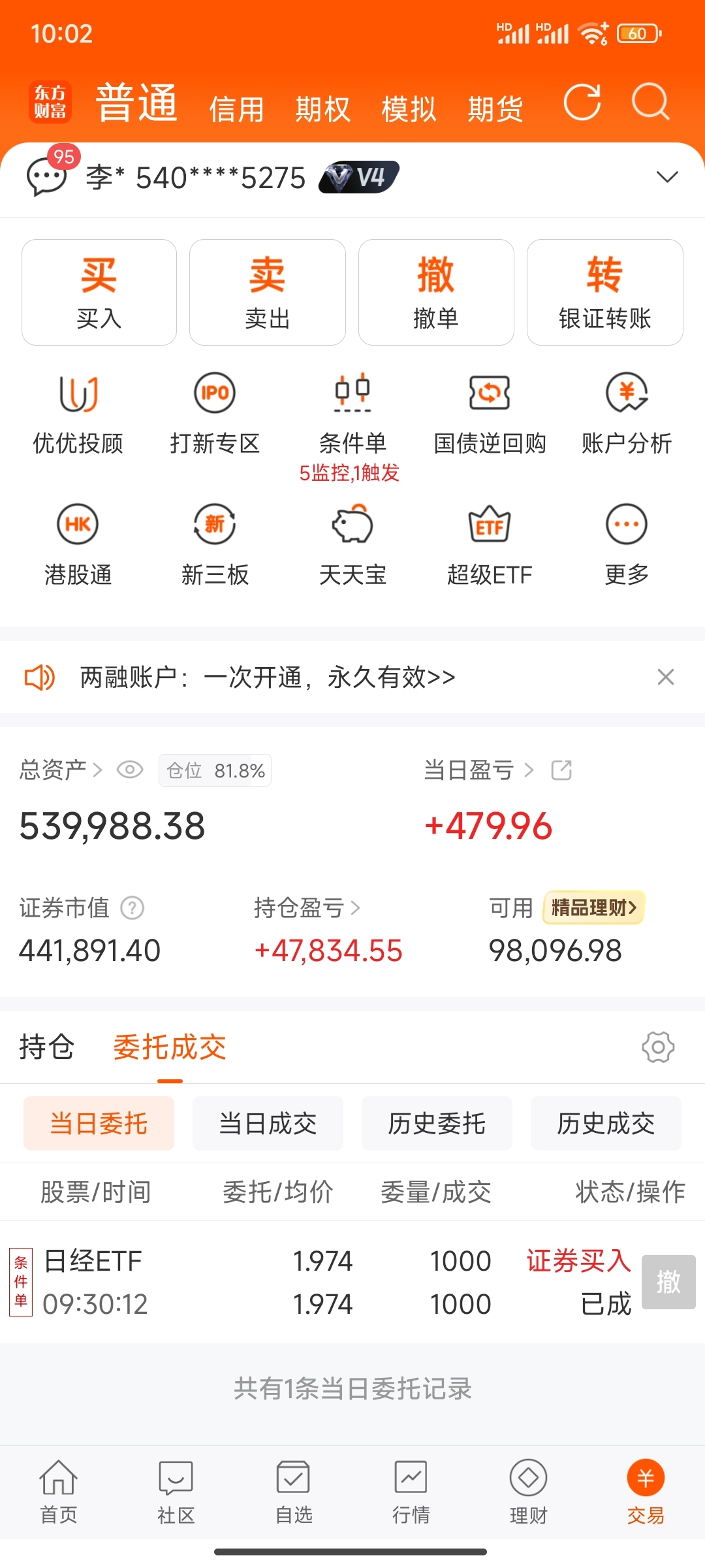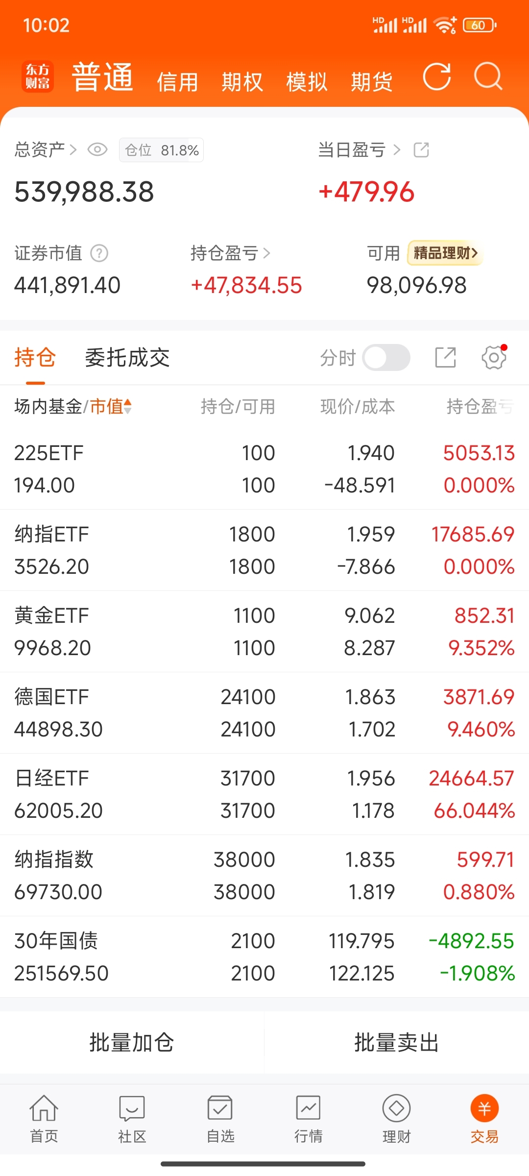 定投207天,买入日经1000股,今日盈亏+479,总盈亏+47834。