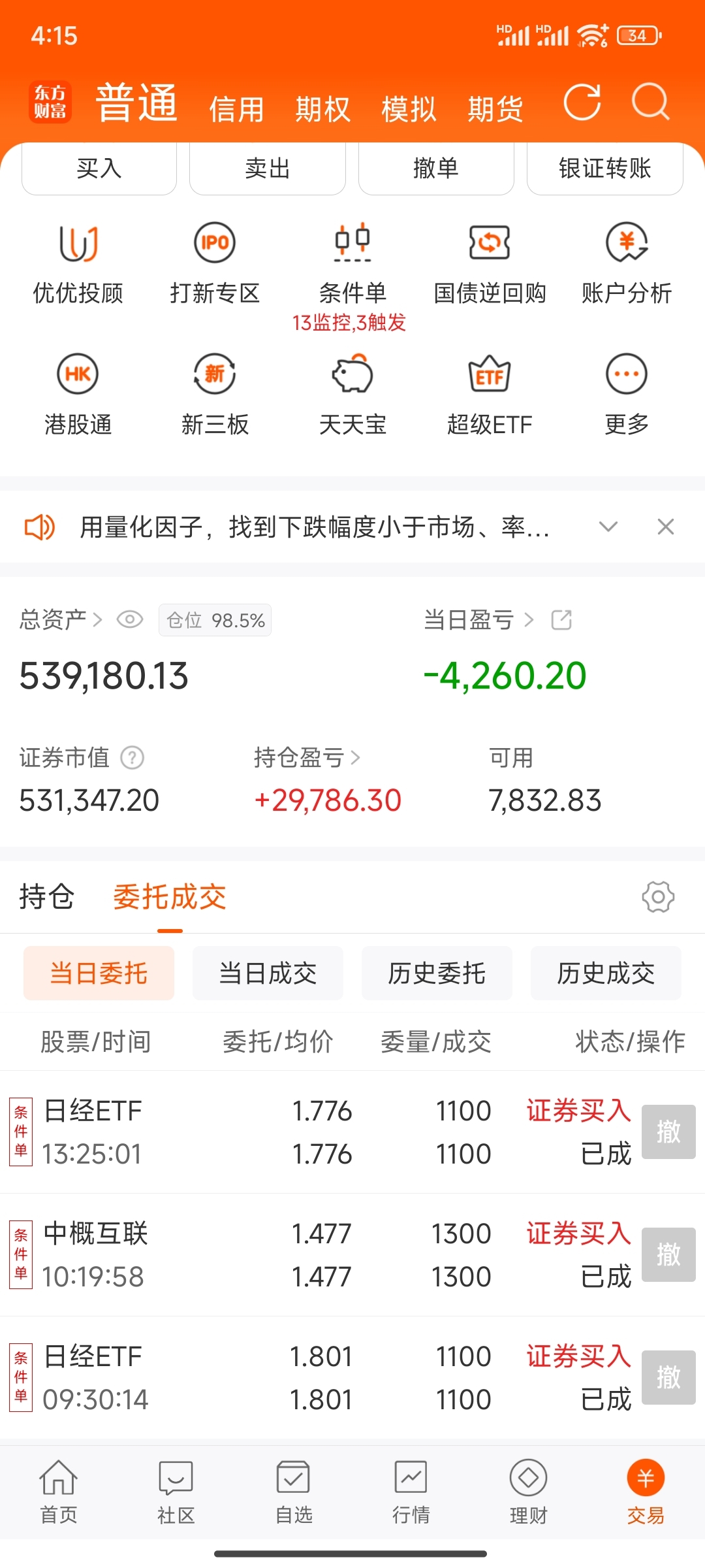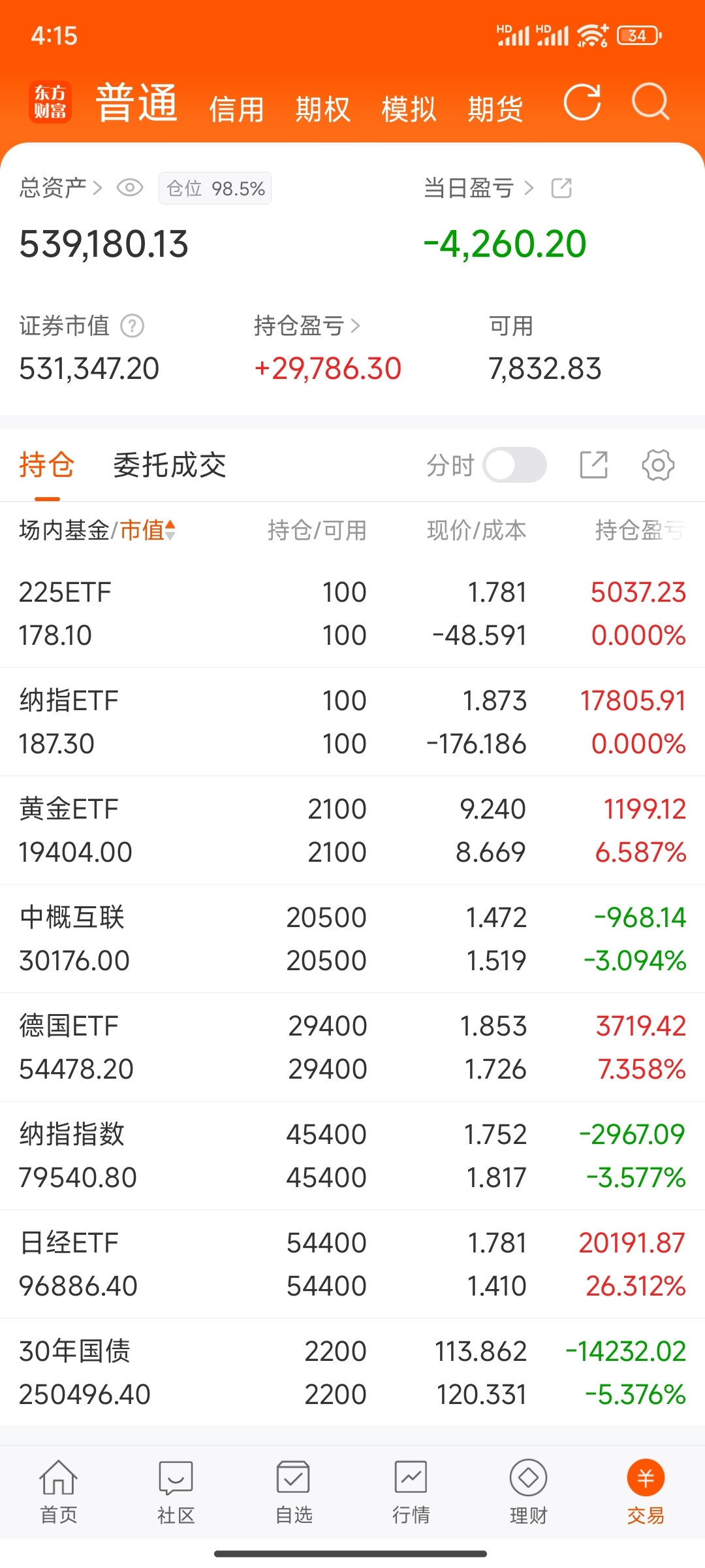 定投第242天,买入日经2200股,中概1300股,今日盈亏-4260,总盈亏+