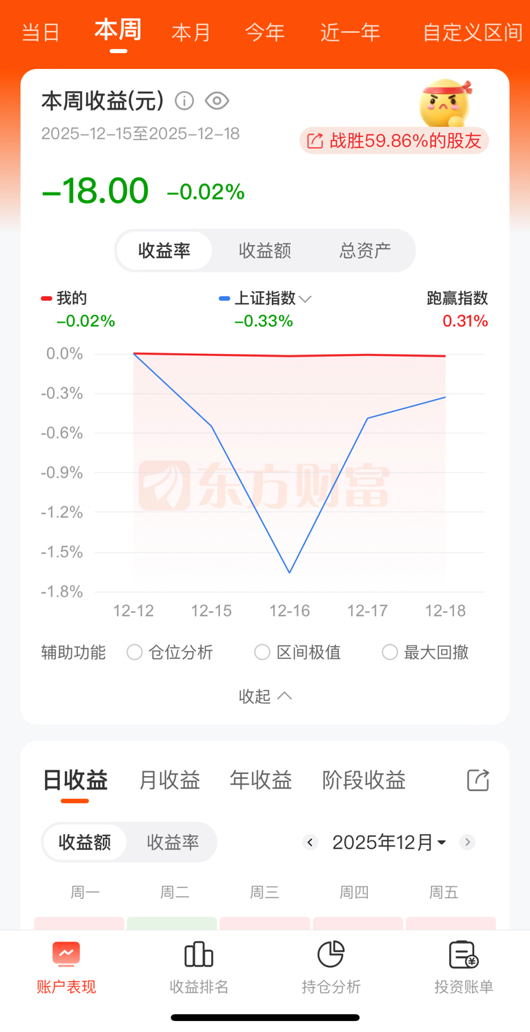 投资第102天,今日盈亏-6元,今年累计盈亏16268元,高位横盘震荡,是涨是跌