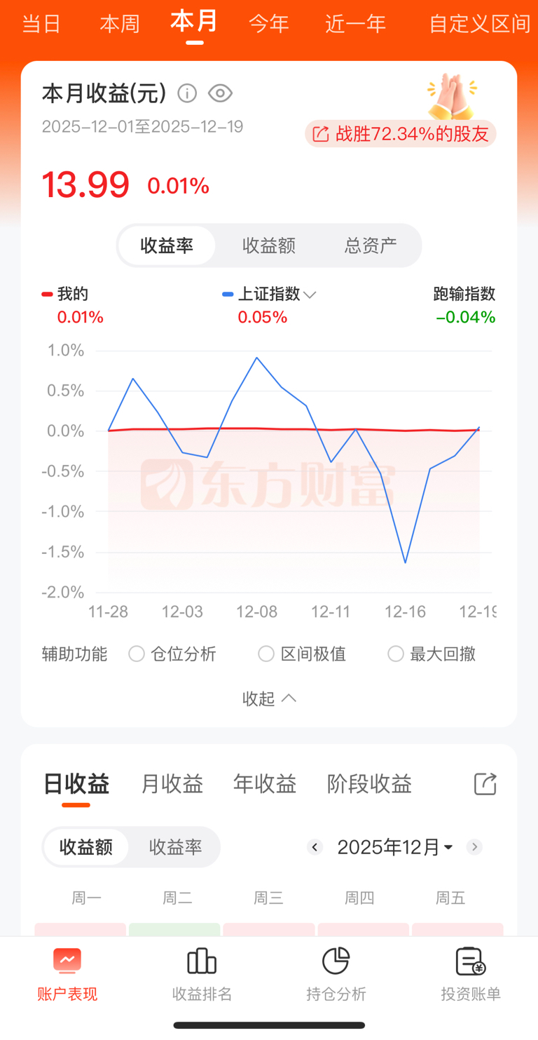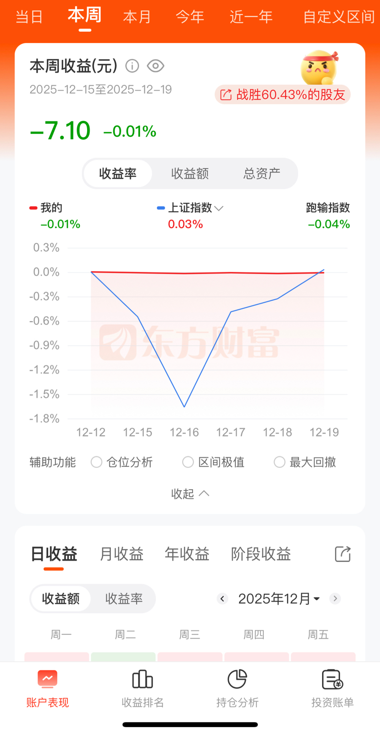 投资第103天,今日盈亏10元,今年累计盈亏16279元,毫无波澜,这要不要开启