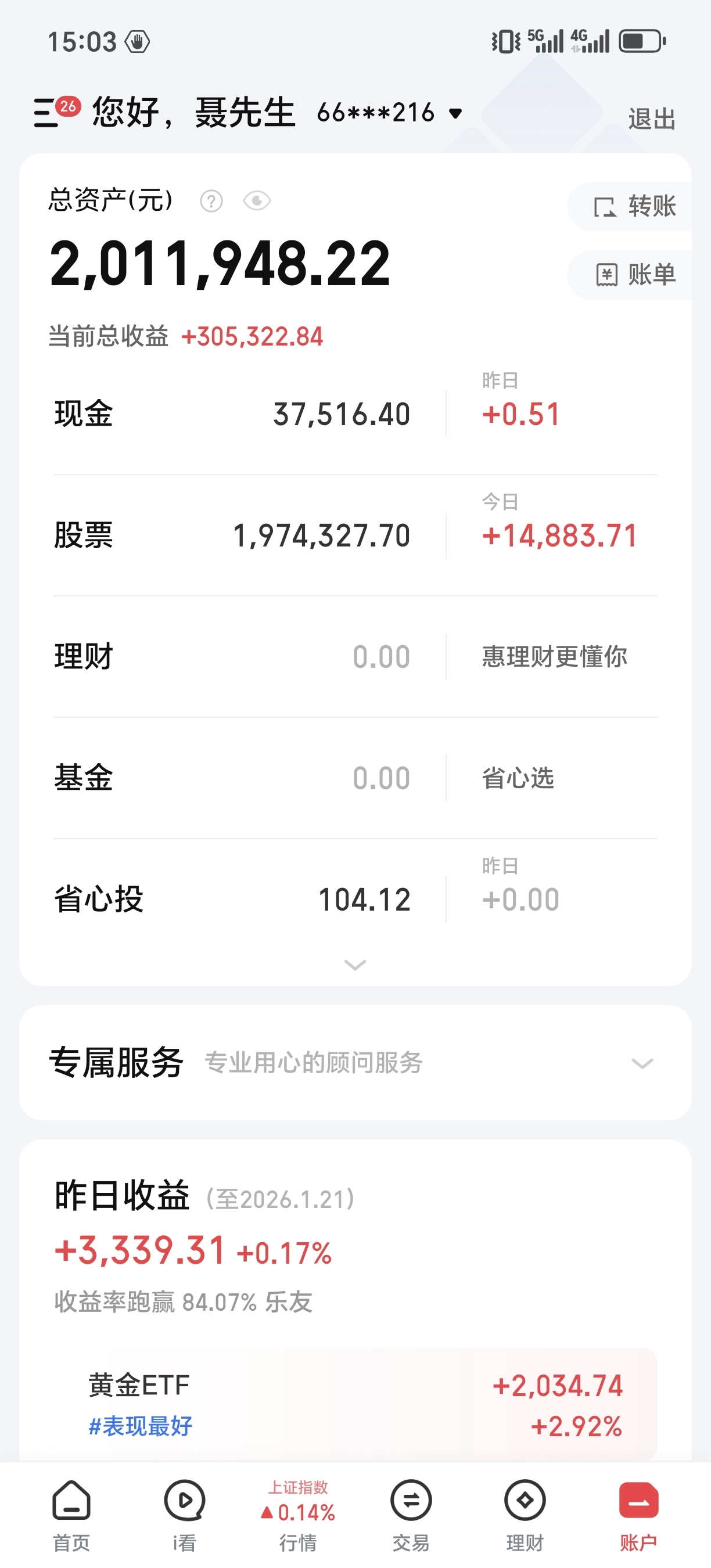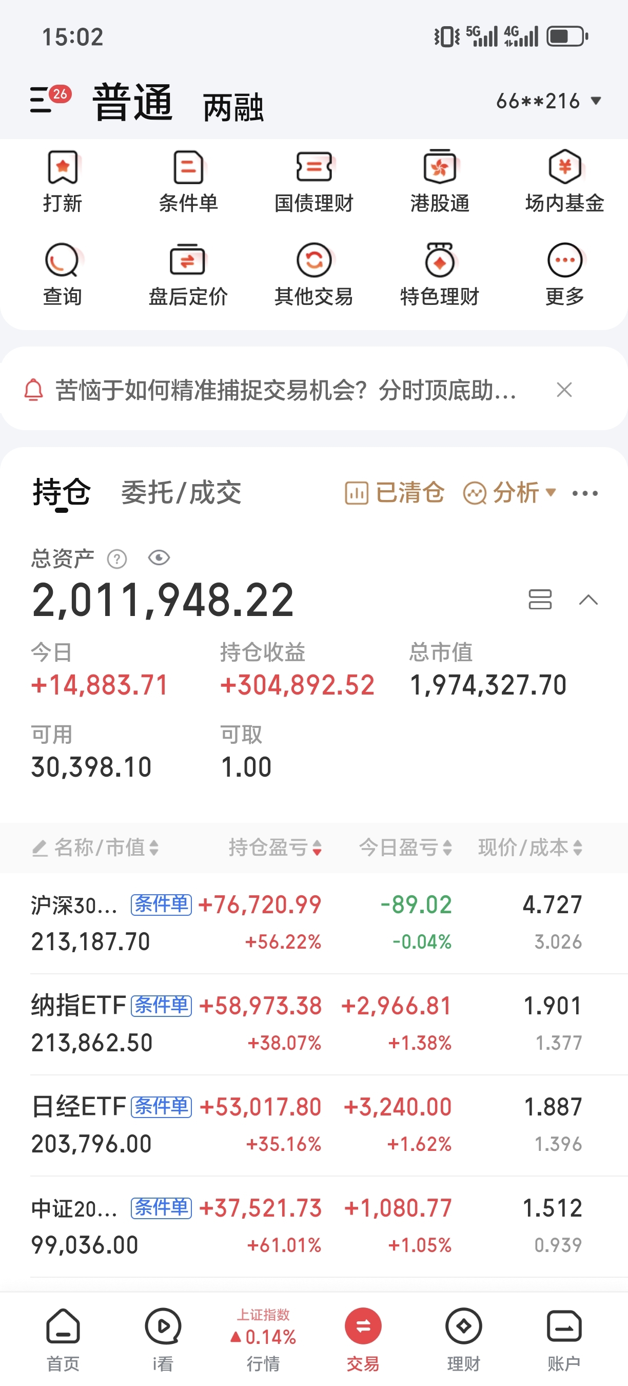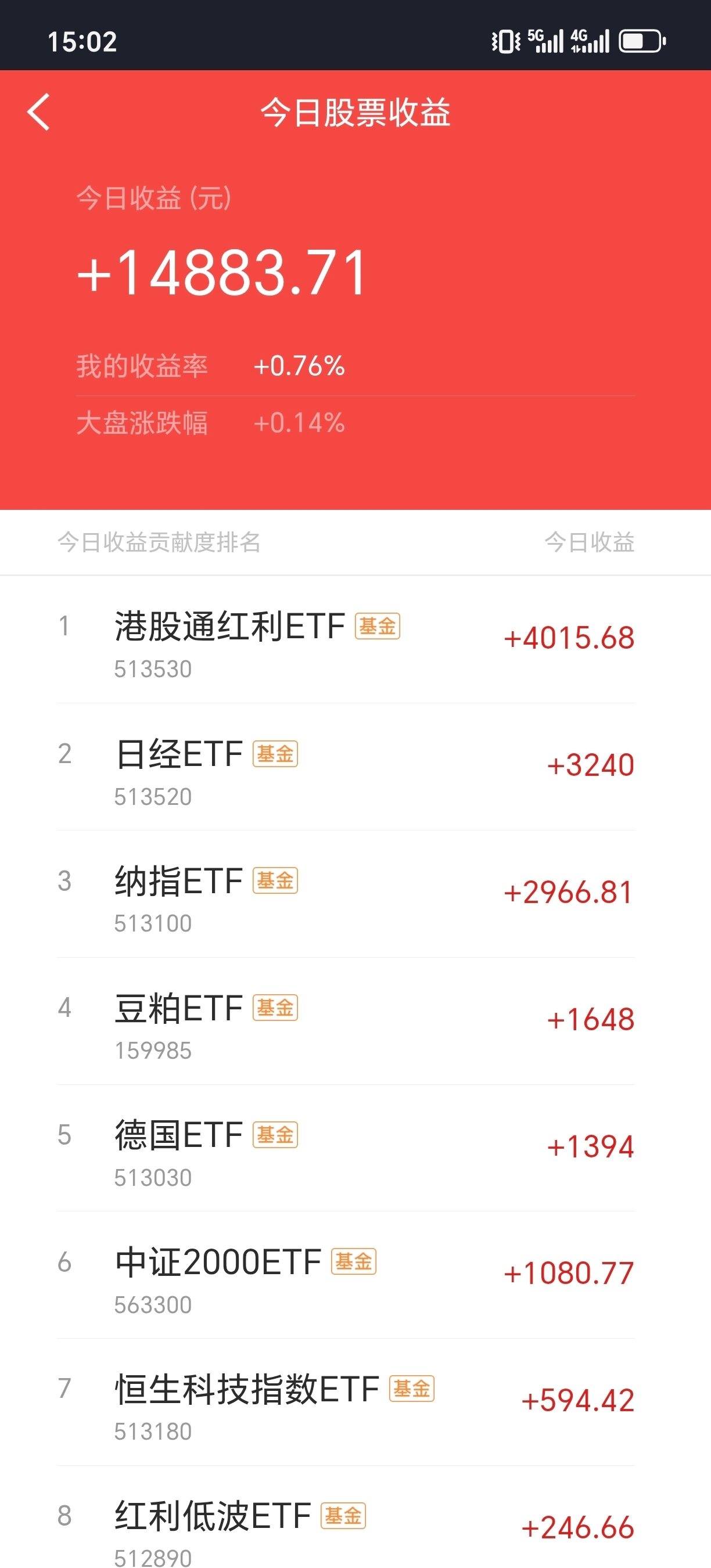 今日盈亏:14883元