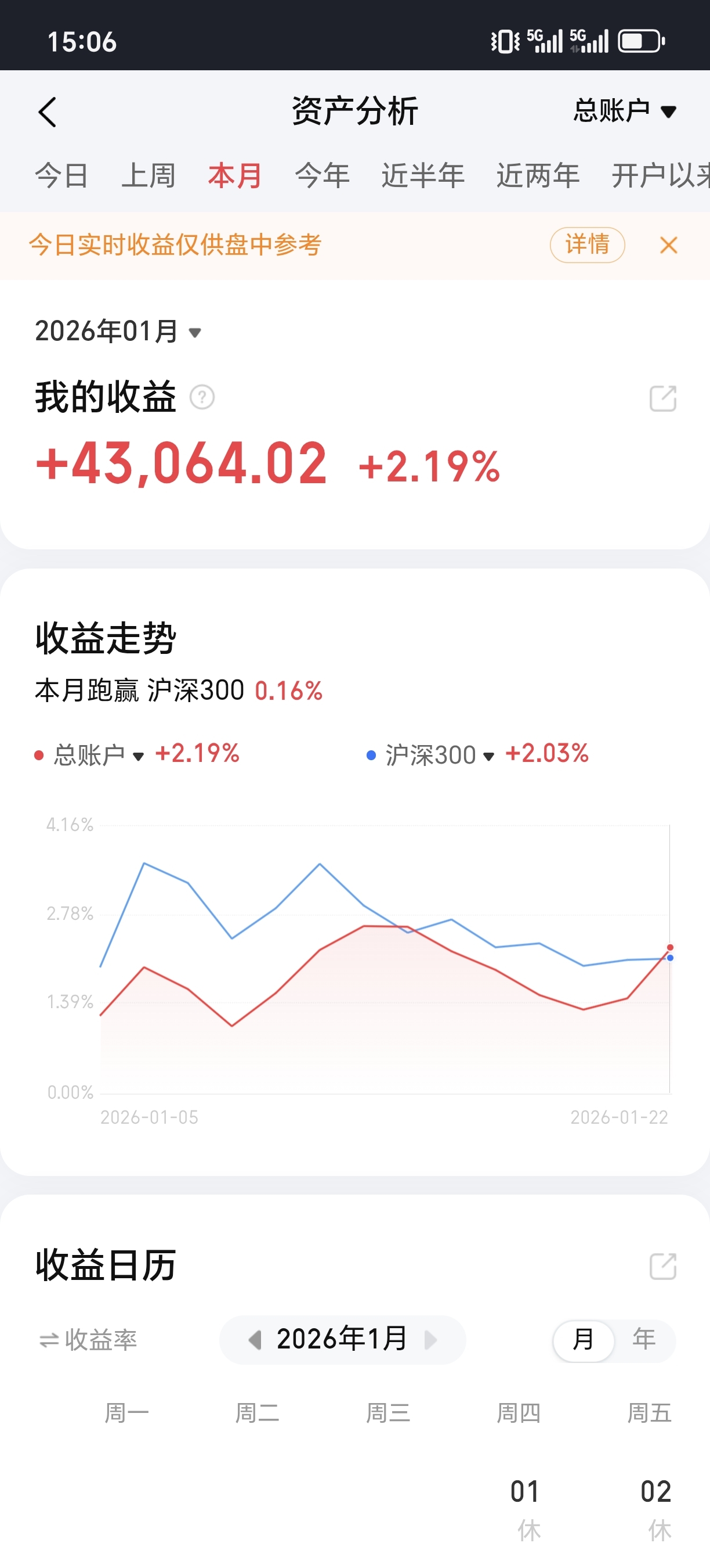今年盈亏:43064元