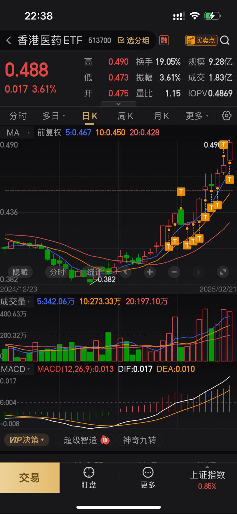 $香港医药ETF(SH513700)$ 我是快乐的做T小行家