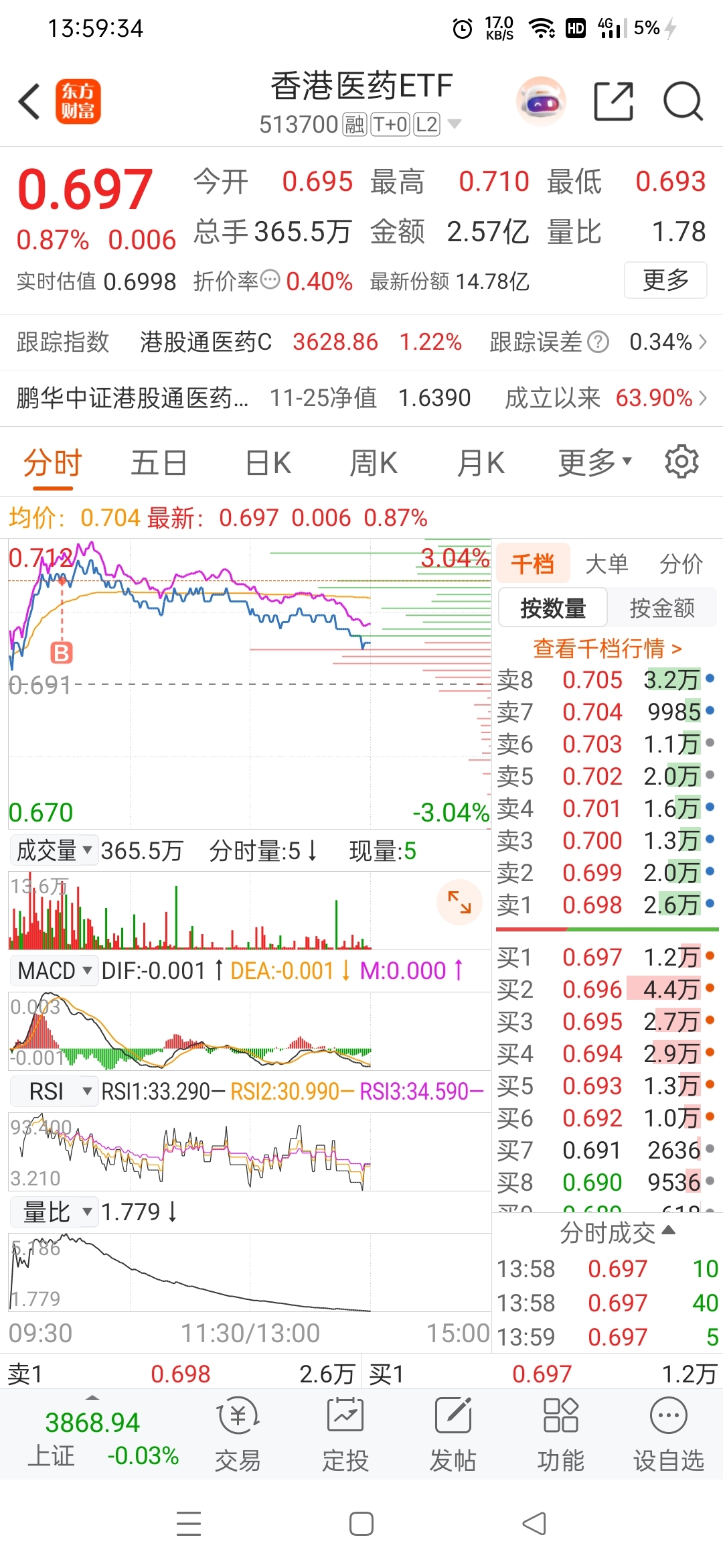$香港医药ETF(SH513700)$ 什么鬼。被我几百手买蹦了?