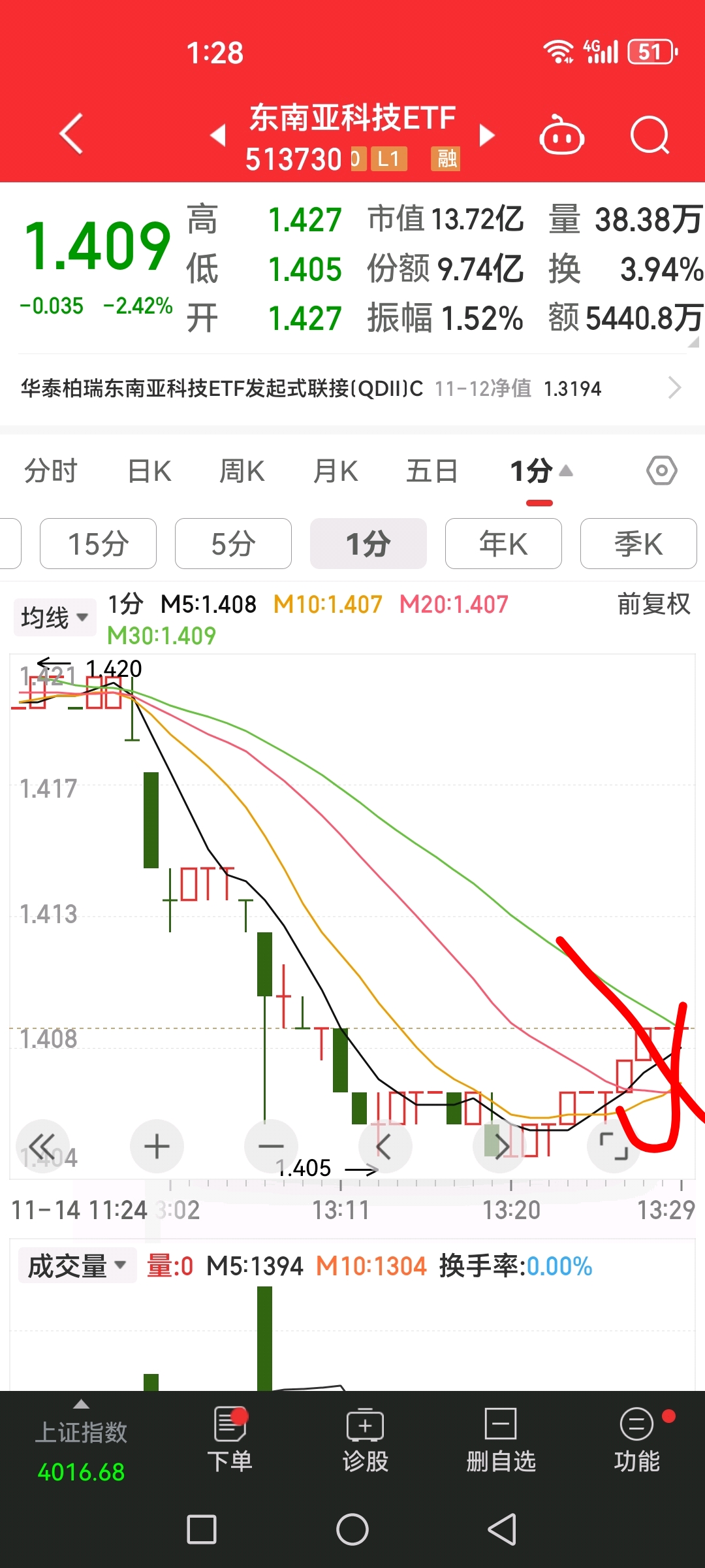 $东南亚科技ETF(SH513730)$ 一分钟到顶了快跑兄弟们,要砸盘了