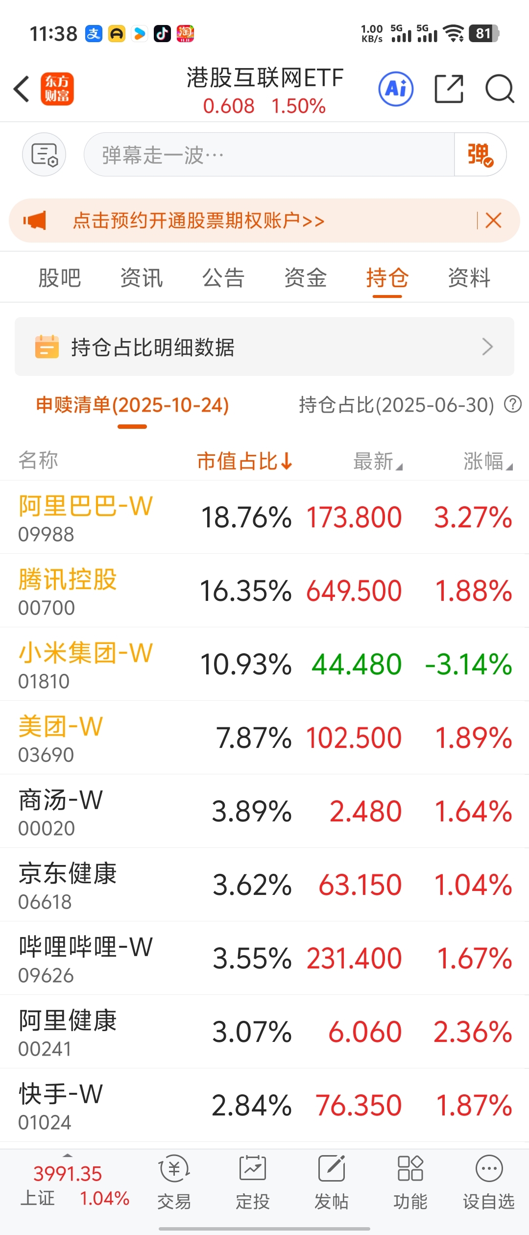 $港股互联网ETF(SH513770)$ 唯一的绿色