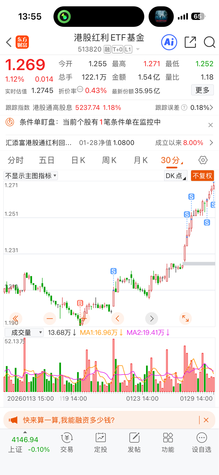 $港股红利ETF基金(SH513820)$ 祝各位发财