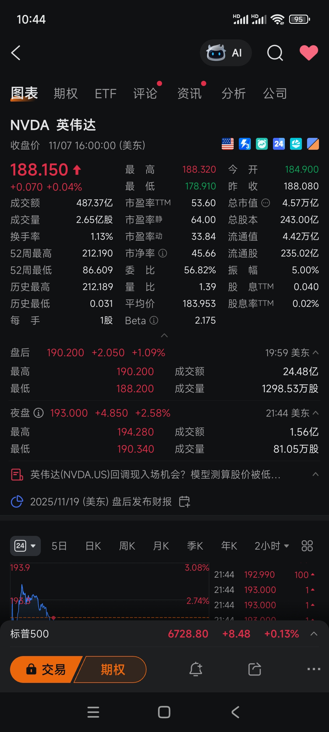 $美国50ETF(SH513850)$ 英伟达夜盘开始爆涨了且行且珍惜吧小伙伴们