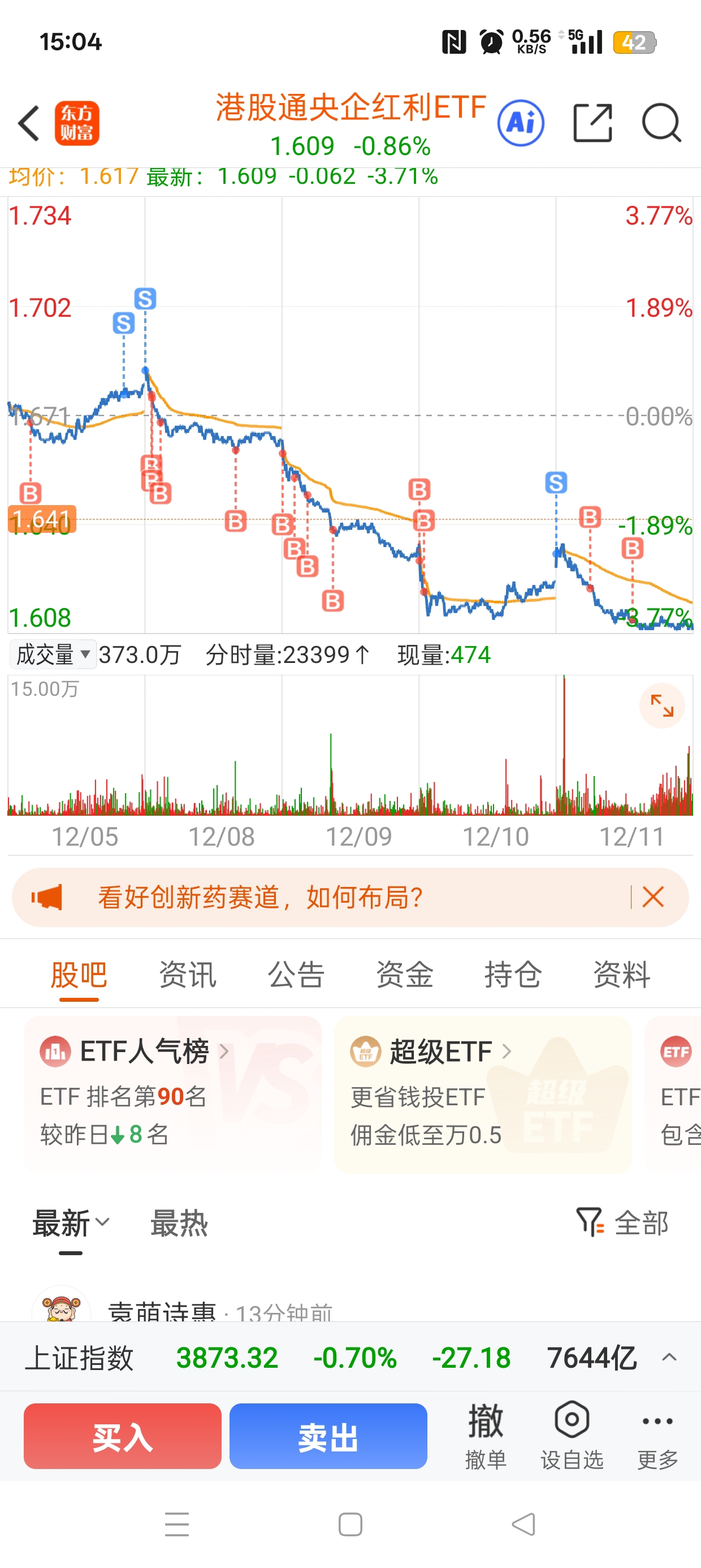 $港股通央企红利ETF(SH513920)$ 居然还亏一个点
