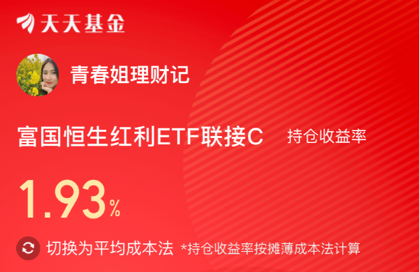 我持仓的$富国恒生红利ETF联接C(OTCFUND|019261)$盈利还不错,跟踪的恒生港股通高股息低波动指数这会看小涨0.1%左右,高股息红利策略日常波动小,即便有调整回撤控制的也较低,而且历史上连跌后也经常出现连涨行情,净值修复起来很快。富国恒生红利符合新国九条“增强分红稳定性、持续性和可预期性业”的政策导向,自2024年10月以来,每个月都给分红,收益及时落袋为安,避免坐“过山车”,近1年已涨36.5%,长期持基体验还不错!$富国恒生红利ETF联接A(OTCFUND|019260)$