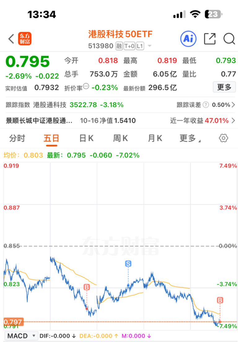 $港股科技50ETF(SH513980)$ 回来了,接下来就看吧。