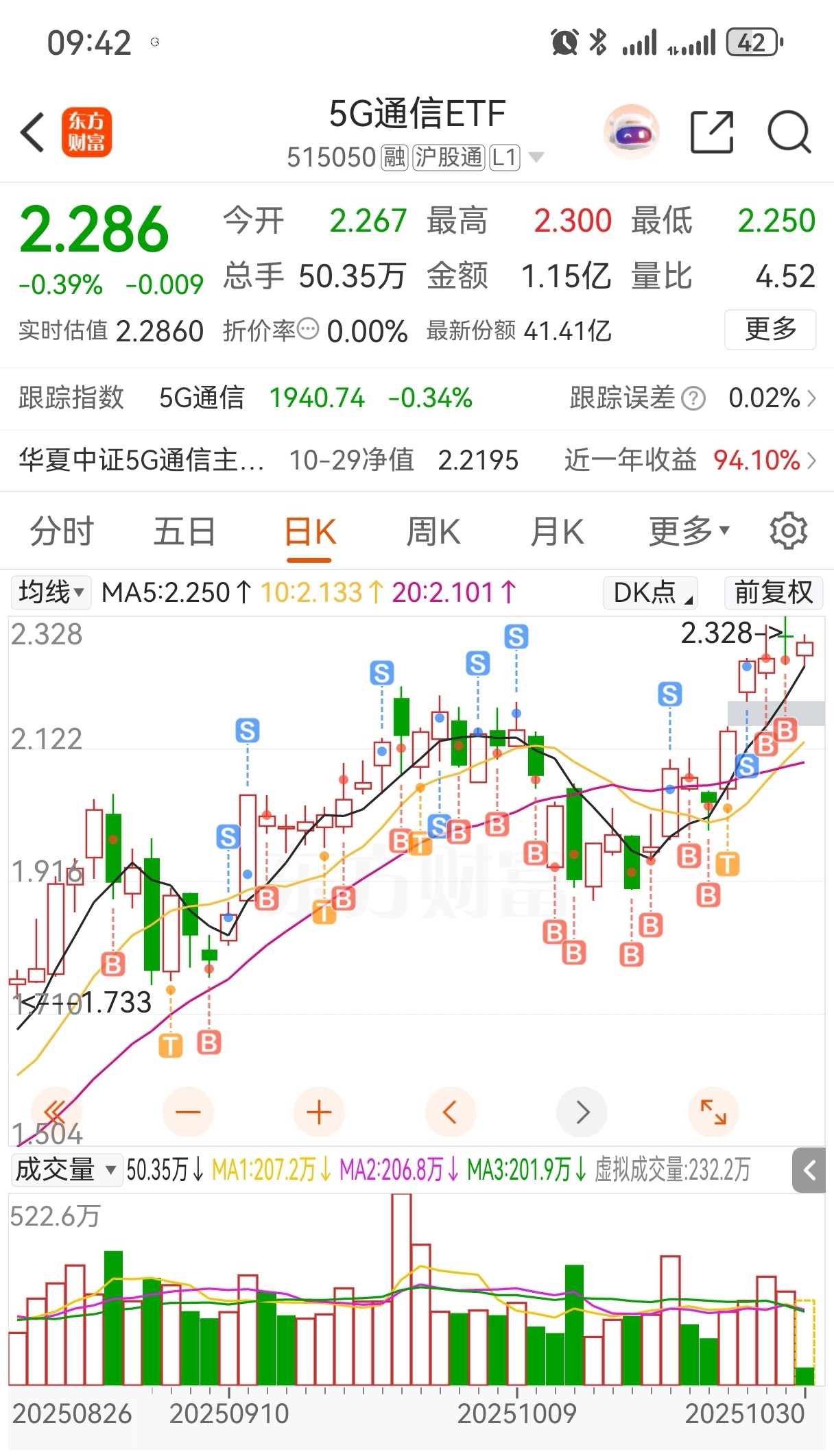 $5G通信ETF(SH515050)$ 卖了不忍心又回来了,可别被套,高度有点吓人