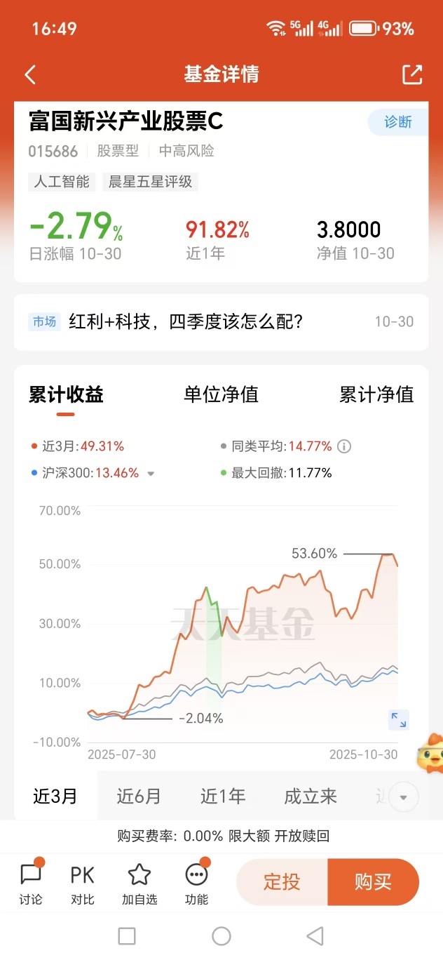 最近科技线太猛了!我拿的财通成长优选C和富国新兴产业C都是布局硬核制造,但后者重