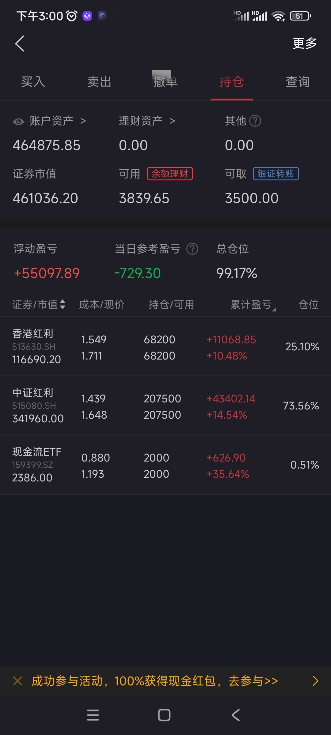 加仓资金准时到位,继续增仓核心资产。2025.11.13