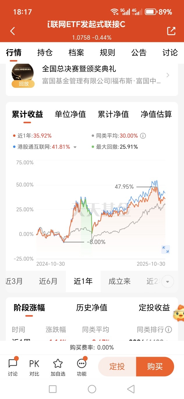 我配了红利低波打底,又搭了富国中证港股通互联网ETF联接C近2年涨56%,跑赢大多数同类,估值比过去五年72%的时间都便宜,互联网板块这位置,拿点仓位很安心。
