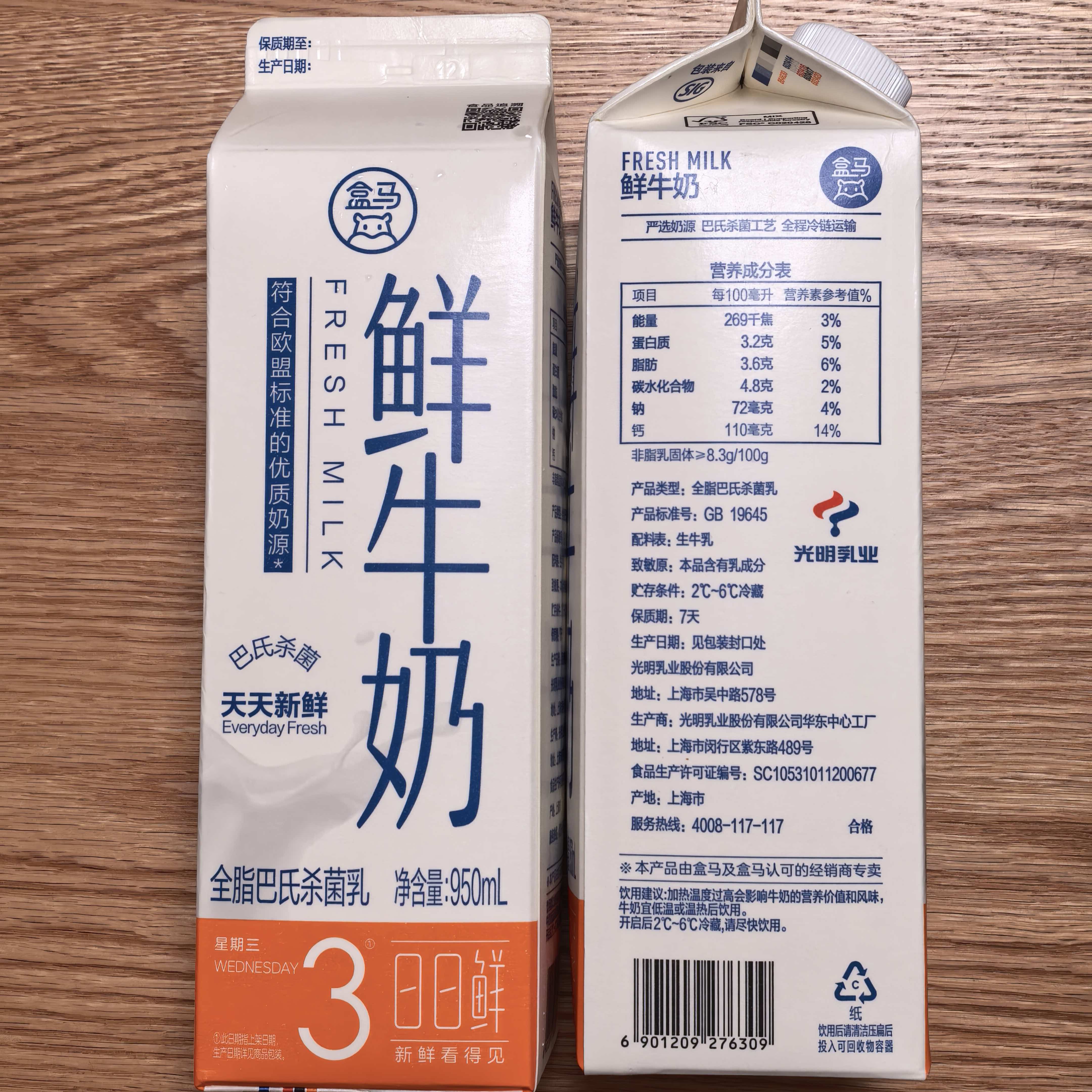 盒马的鲜奶供应商本月改光明了(至少上海是),之前很长一段时间是新乳业,再之前好像是蒙牛...