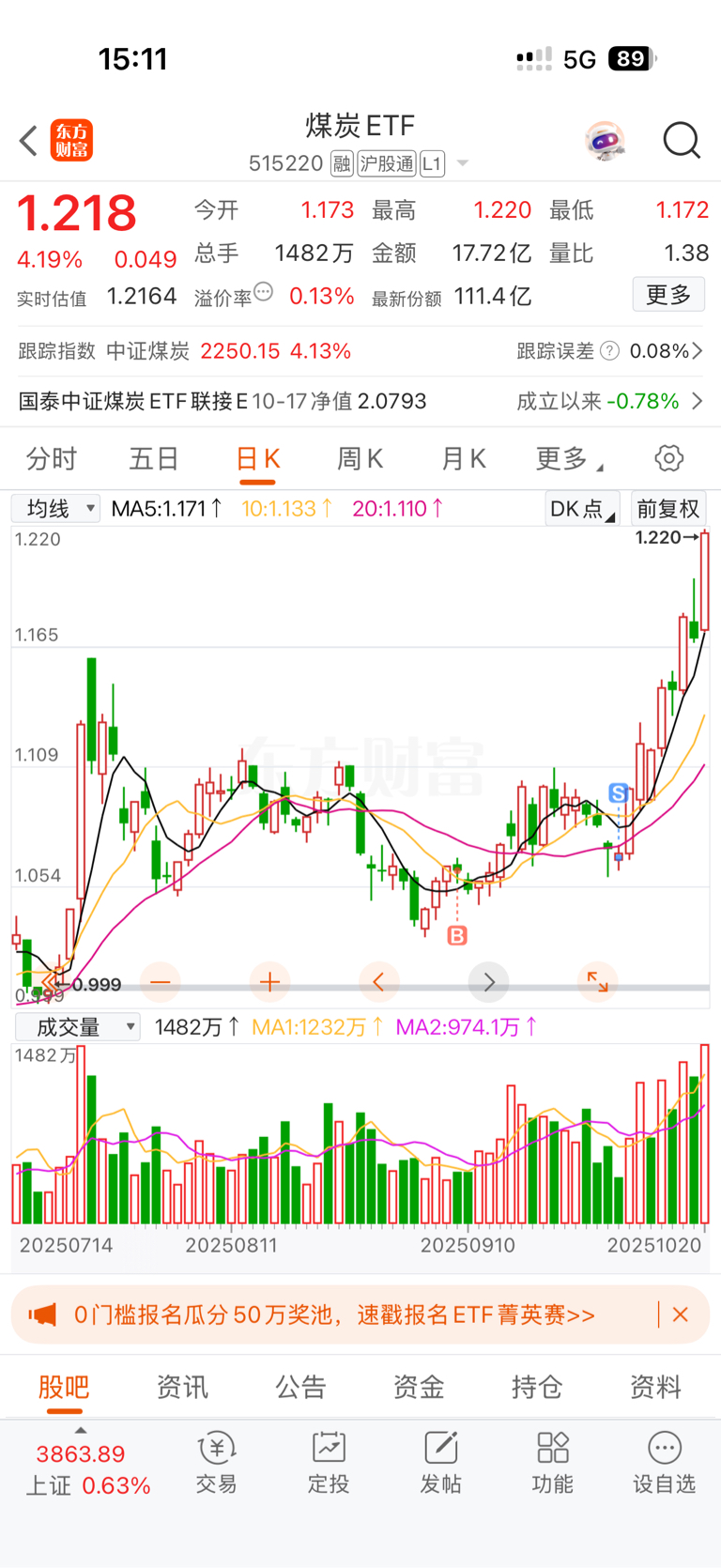 $煤炭ETF(SH515220)$ 真得感谢我吧