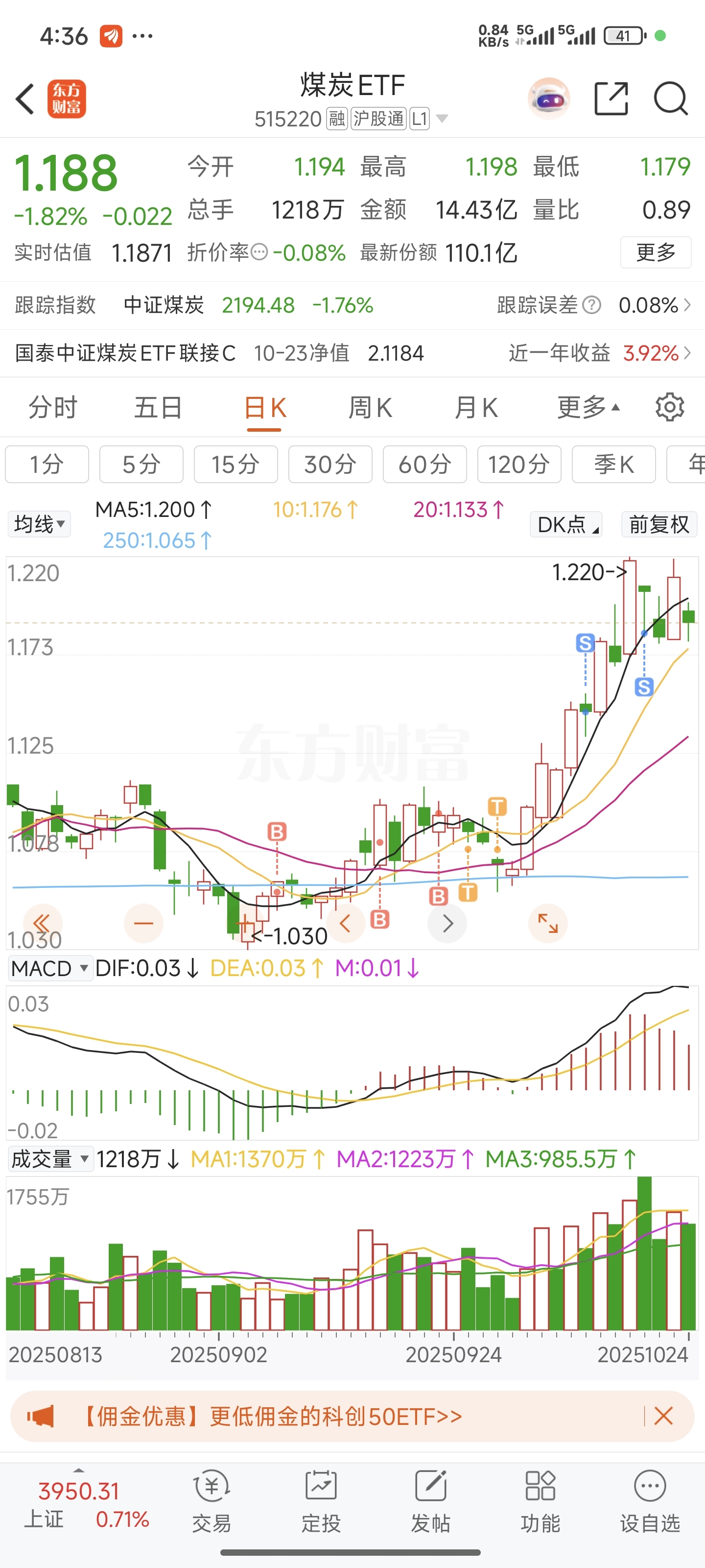 $煤炭ETF(SH515220)$ 把它换成了科技,吃了两顿肉
