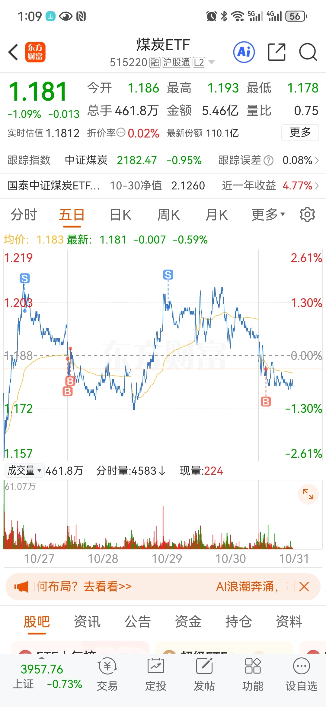 $煤炭ETF(SH515220)$ 买不到最低点,也卖不到最高点,我就是个菜鸟