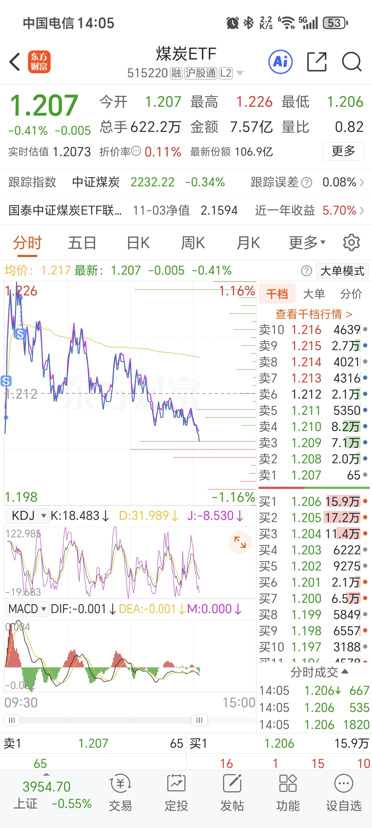 $煤炭ETF(SH515220)$ 感觉不好,清仓了,不知道是对是错,等回调再进吧