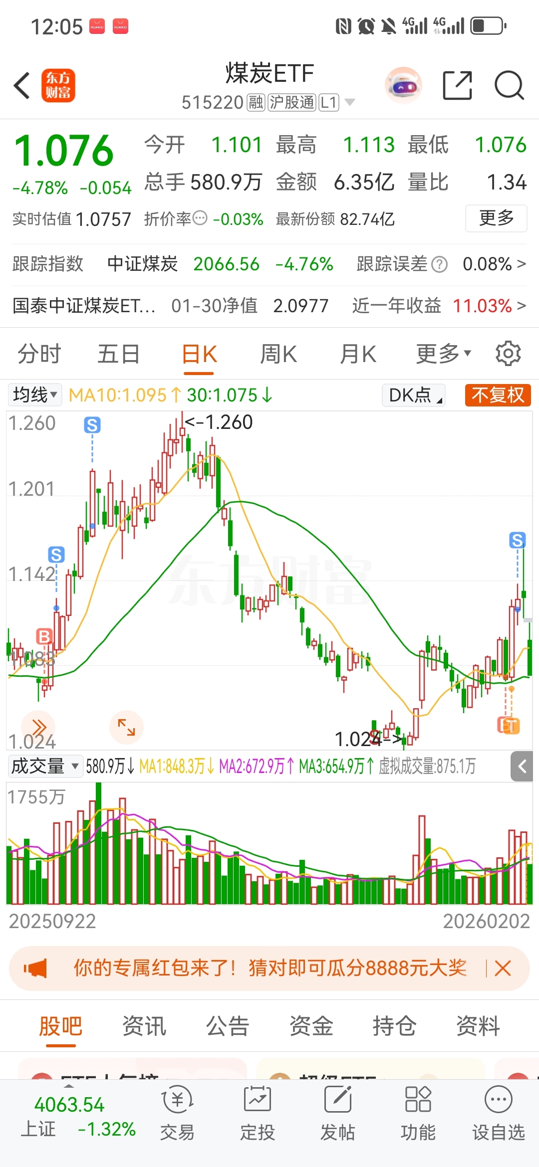 $煤炭ETF(SH515220)$ 这个票轻松拿捏,差不多可以买了,坐等收益