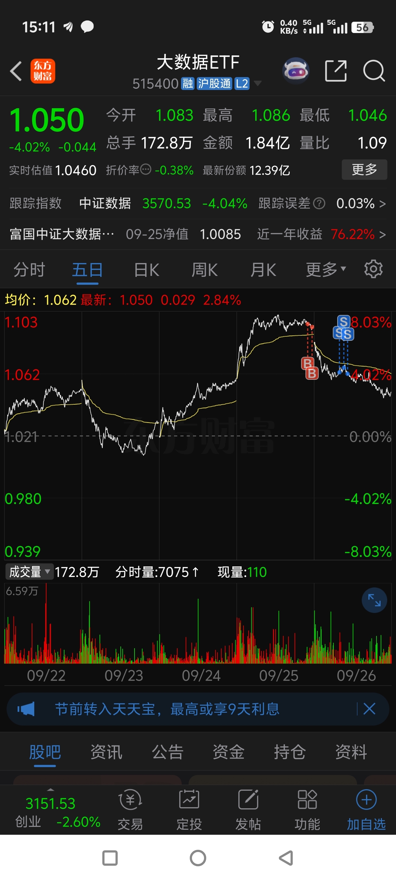 $大数据ETF(SH515400)$ 恶毒把昨天阳线吃掉,割肉走人