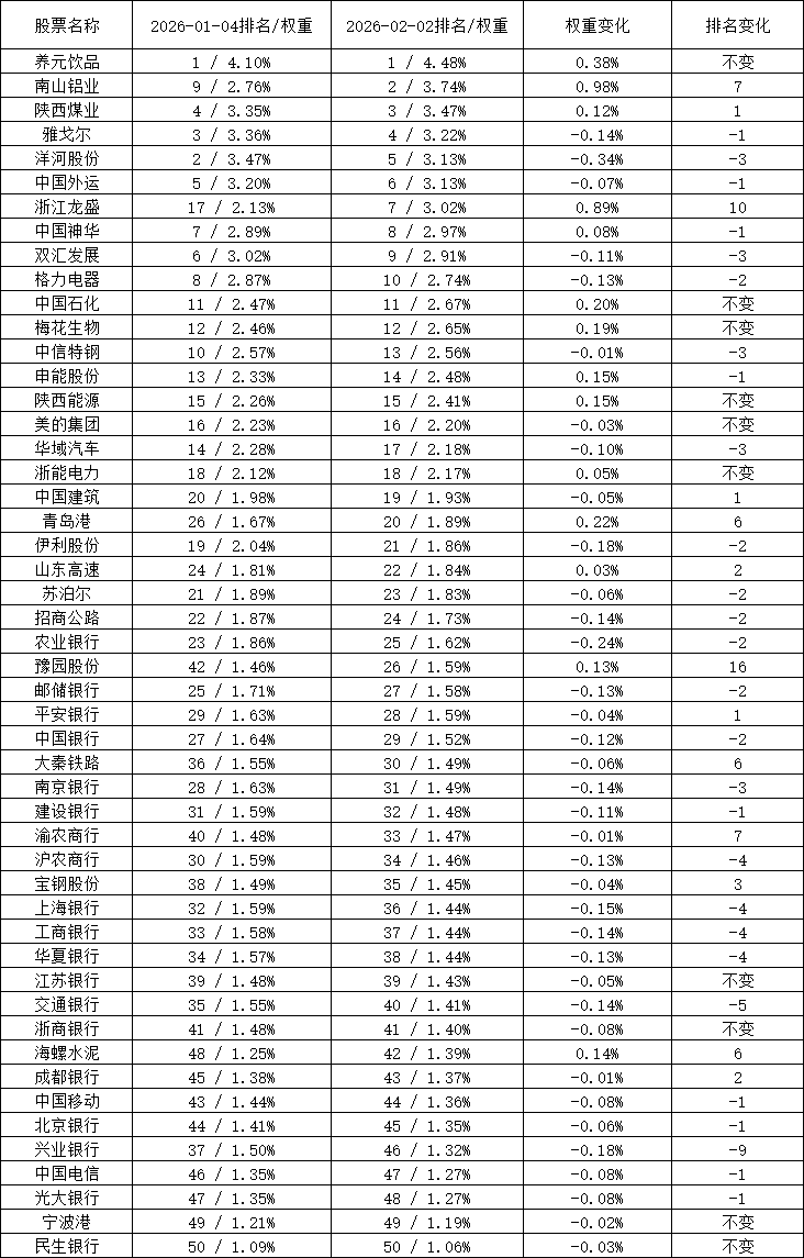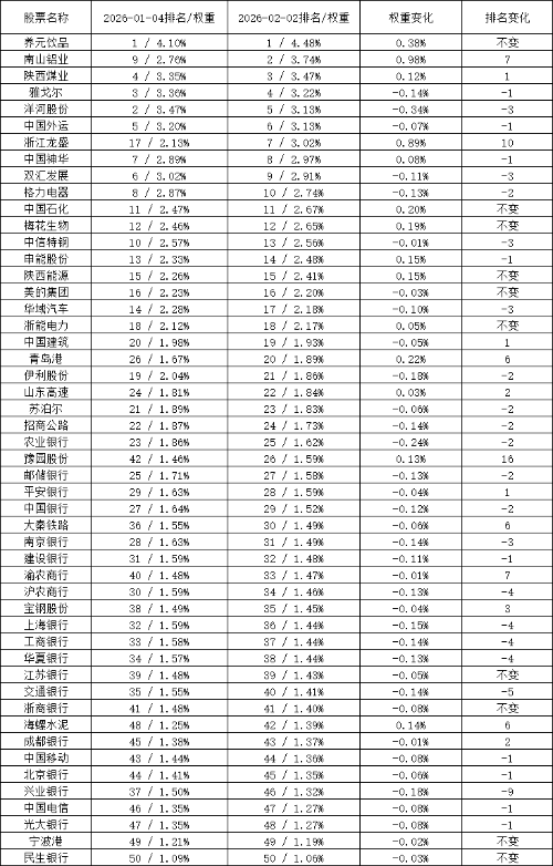 这是我在wind上查到的最新数据,1月4号和2月2号指数权重的信息,再用豆包核对