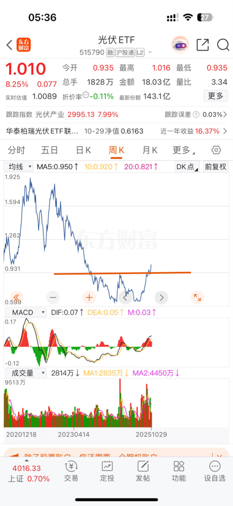$光伏ETF(SH515790)$ W右侧突破,后续大大的行情