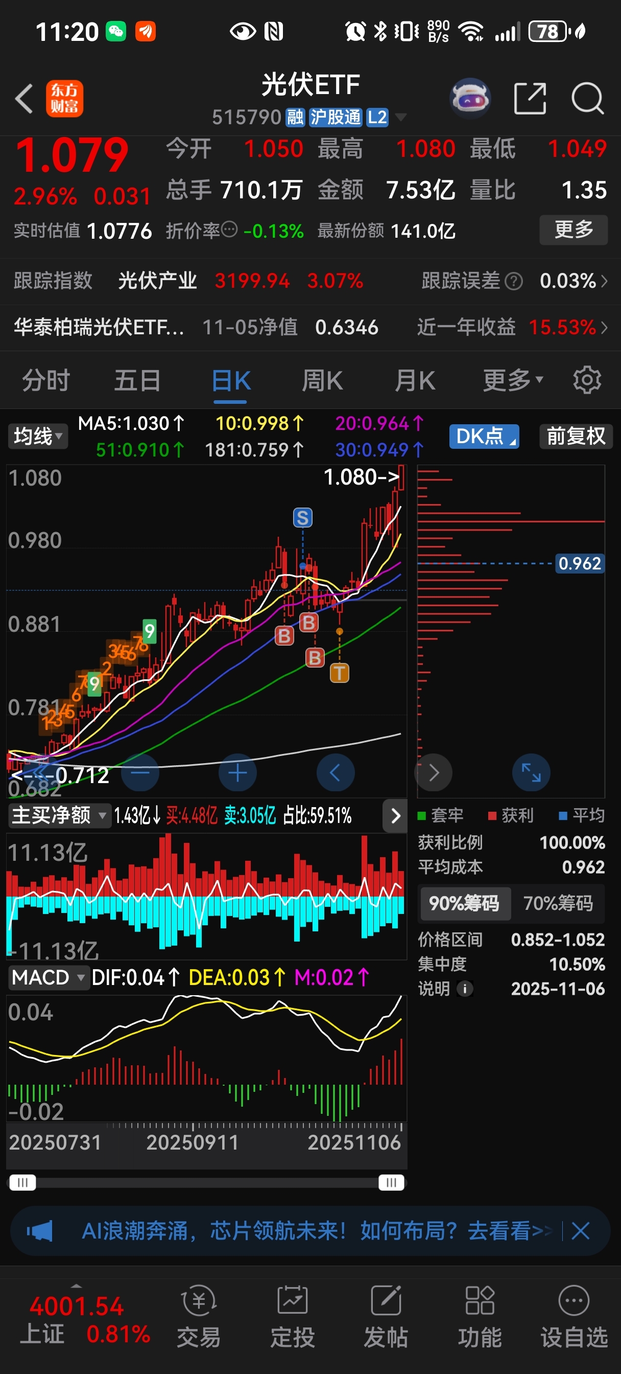 光伏月线仍在低位,持续看好光伏。不到半个月,躺了16个点。买etf更省心