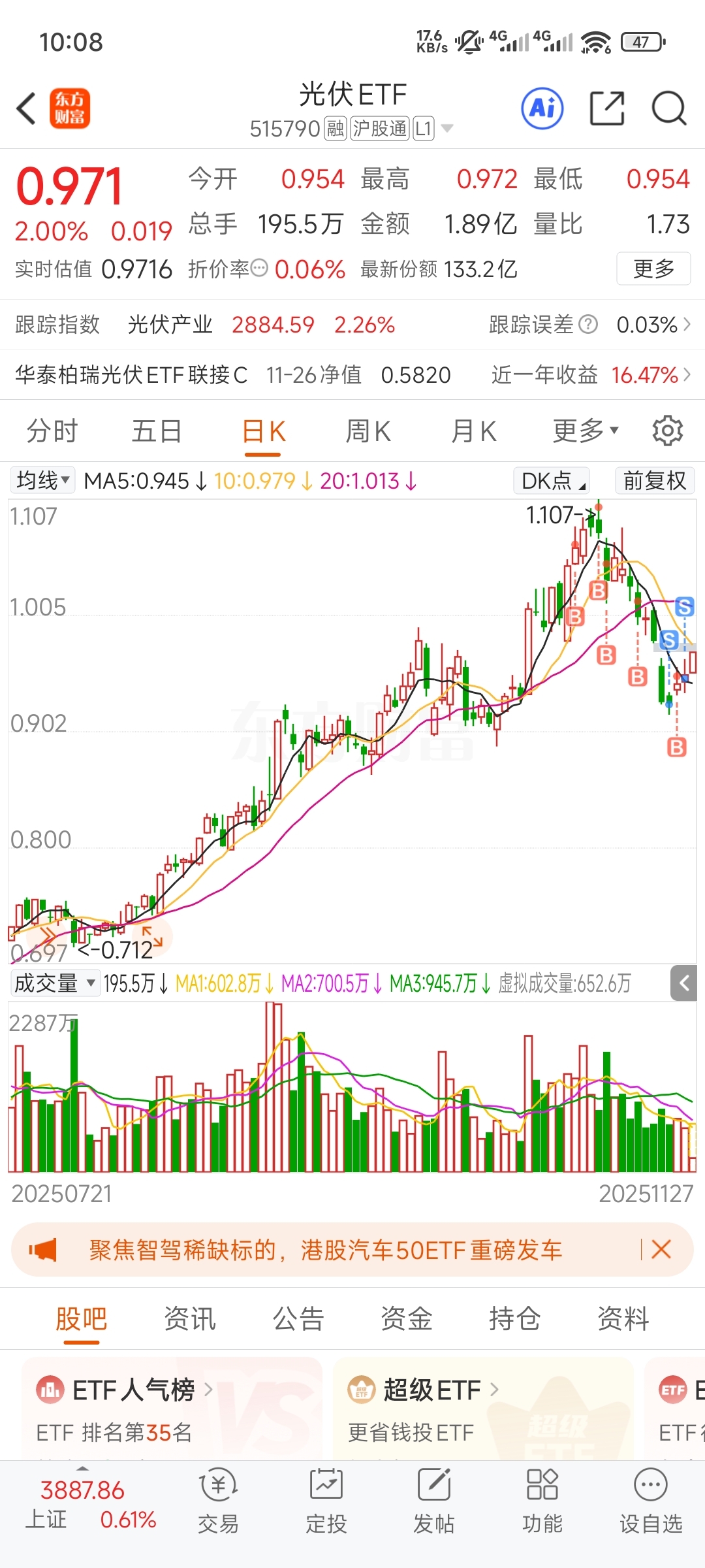 $光伏ETF(SH515790)$ 好一个反向操作