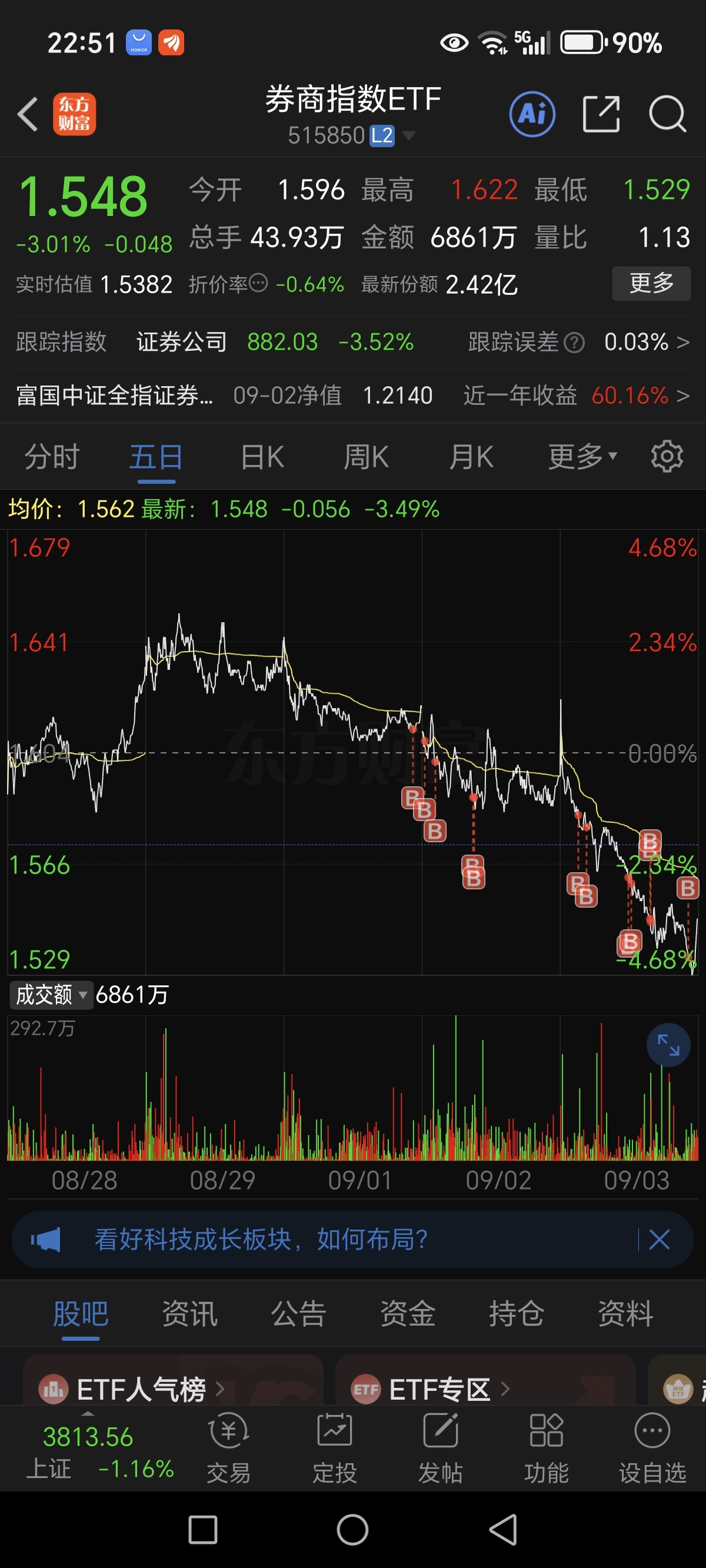 $券商指数ETF(SH515850)$ 难道你就头也不回的下去吗?