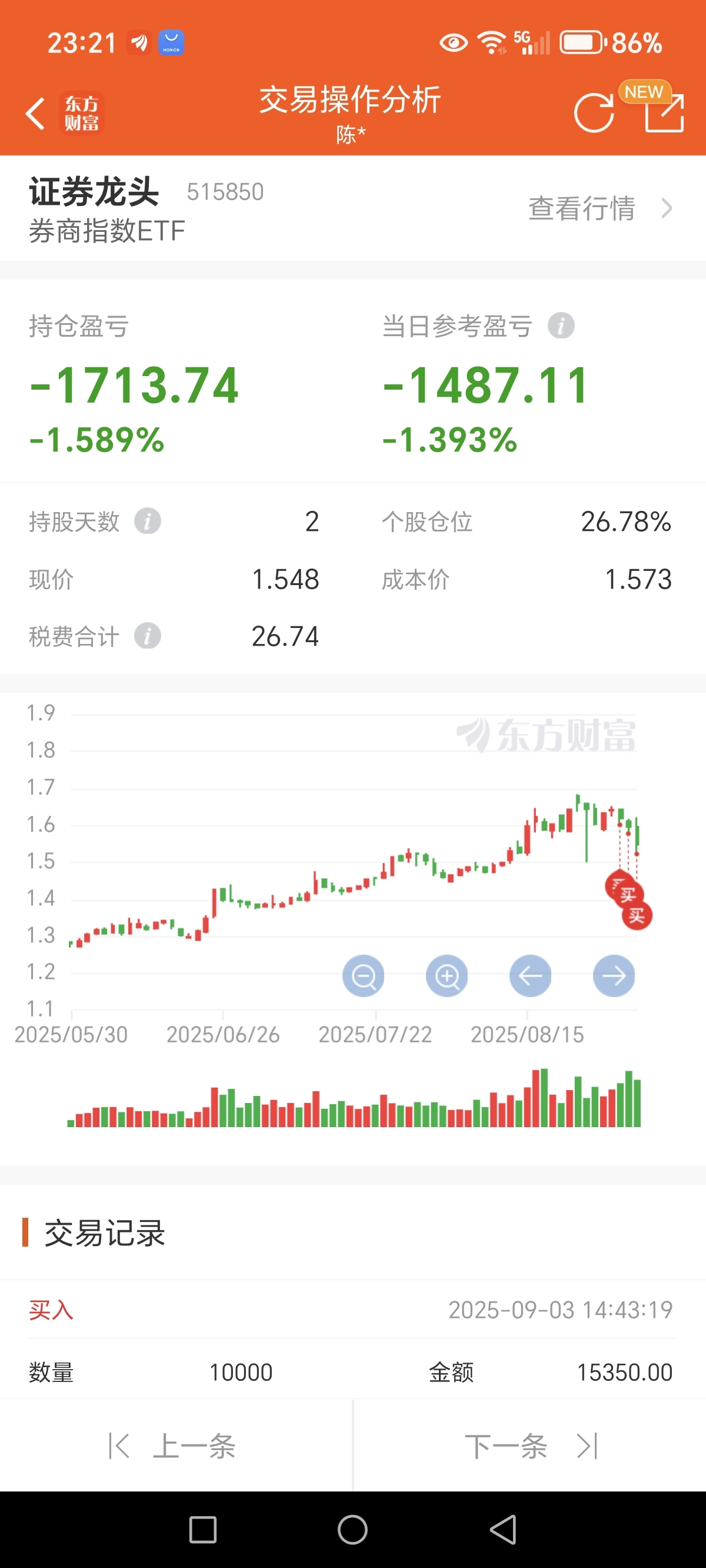$券商指数ETF(SH515850)$ 券商业绩这么好,你咋跑步往下走呢?