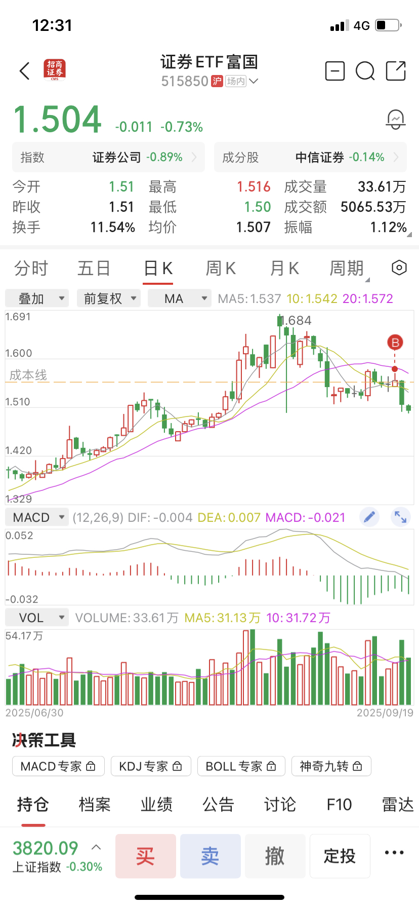 $证券ETF富国(SH515850)$ 慌啥,等企稳后加仓,不要怕不要慌,足够子弹