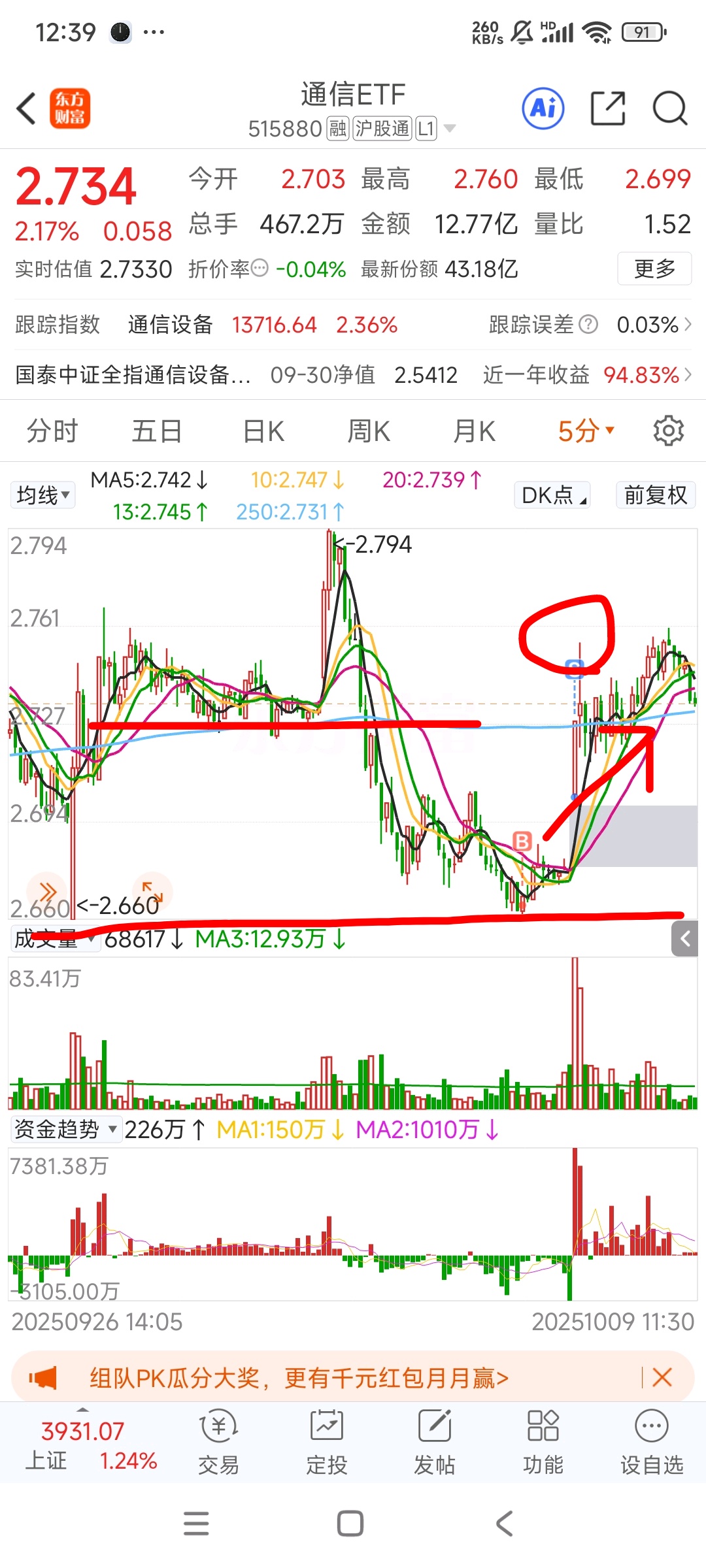 下支撑,上阻力,开盘恐慌分歧遇阻很正常,可今天资金是大量流入的呀,给了它继续上冲的勇气,这点都忘了,而后大盘与板块的上涨很自然就它走强了。