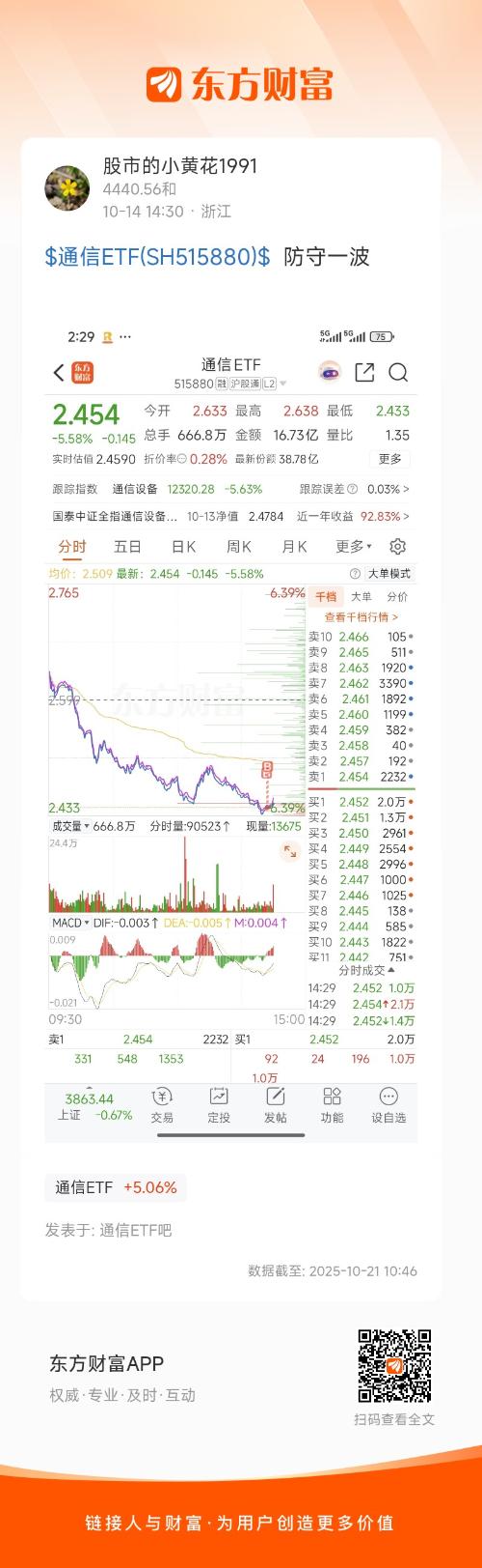 $通信ETF(SH515880)$  防守一波