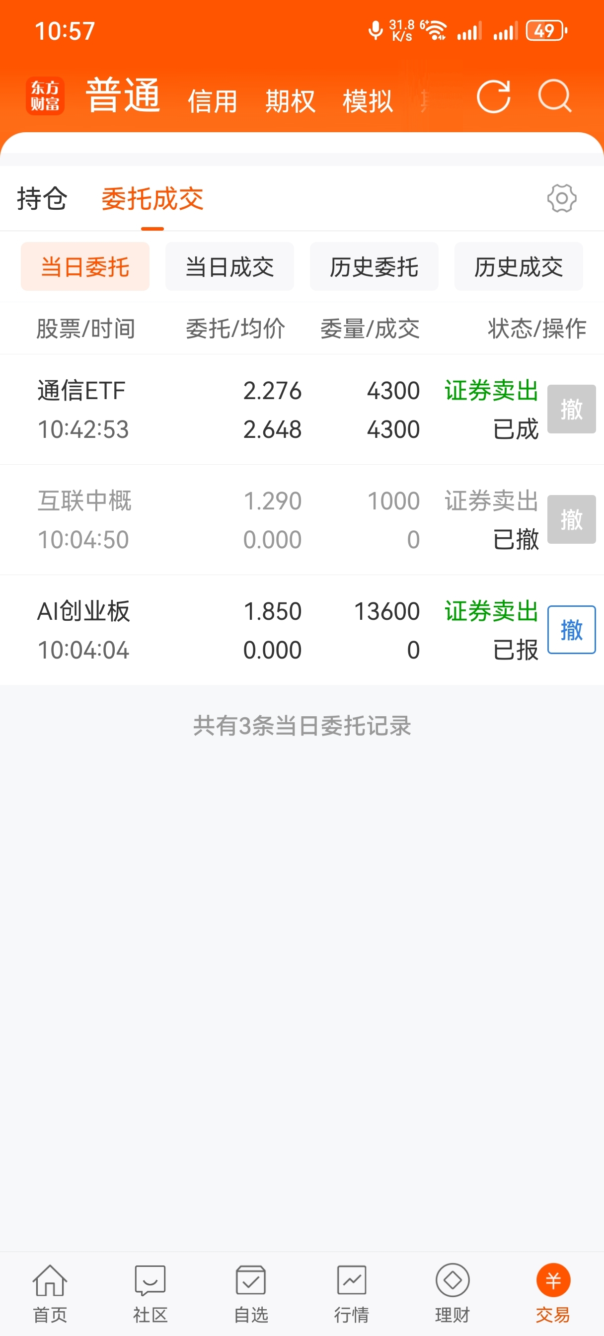 见过有我这么蠢的吗?买的是通信ETF2.648元,卖的是2.276元,这是我干的