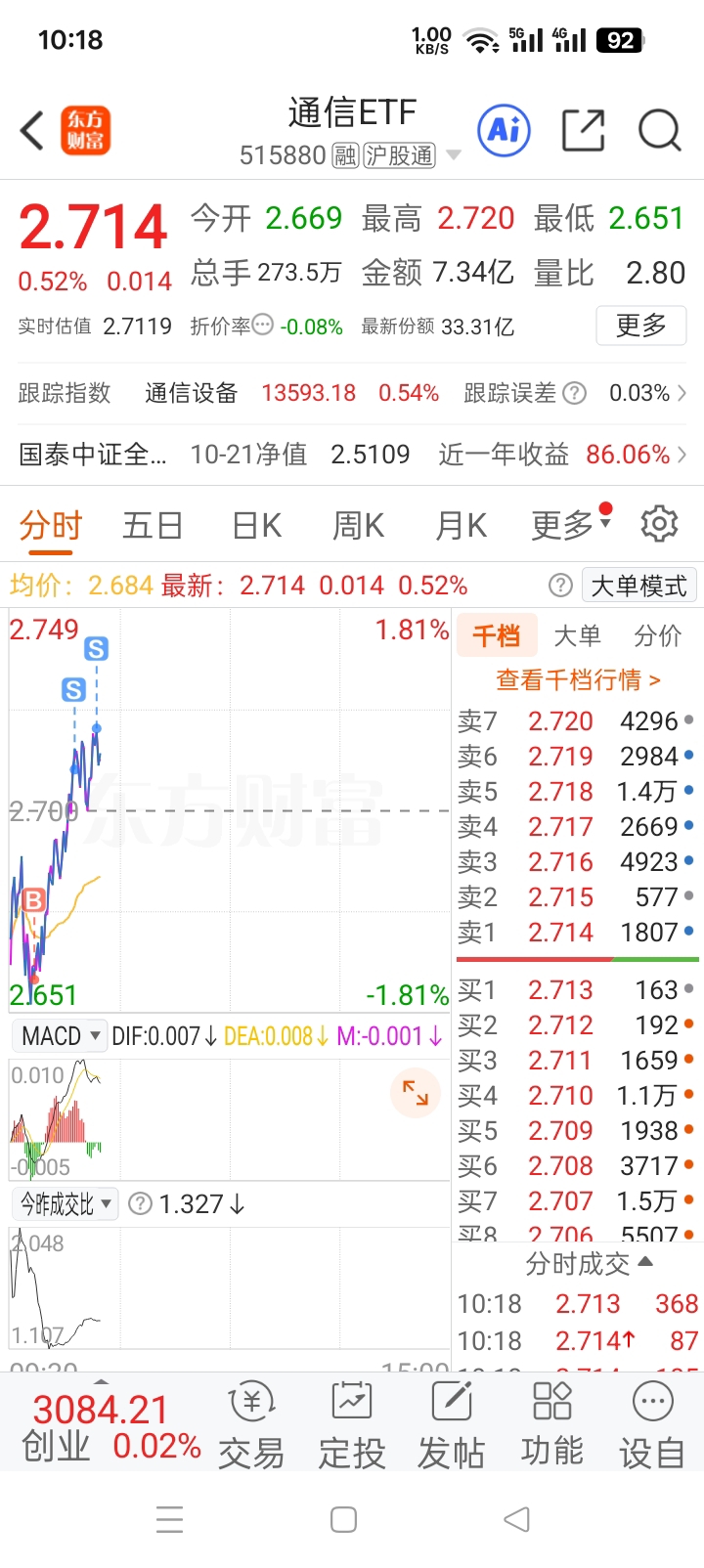 $通信ETF(SH515880)$ 我已出仓。感觉良好!