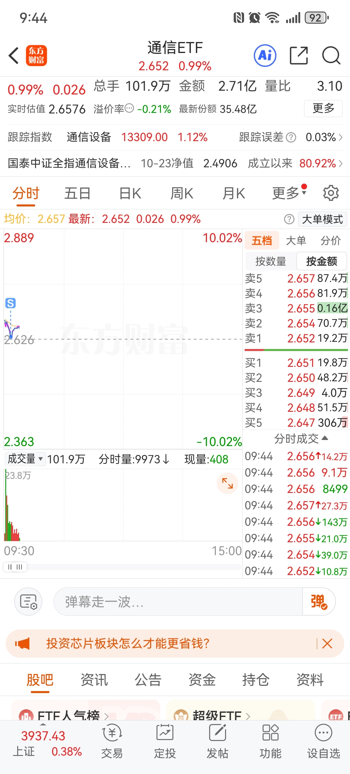 $通信ETF(SH515880)$ 请叫我天才型选手。随手一卖就是最低点