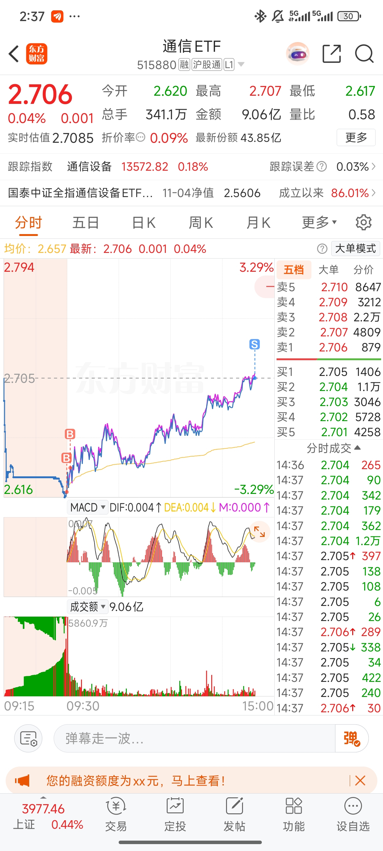 $通信ETF(SH515880)$ 反弹无效不够强,像个假阳线,撤退
