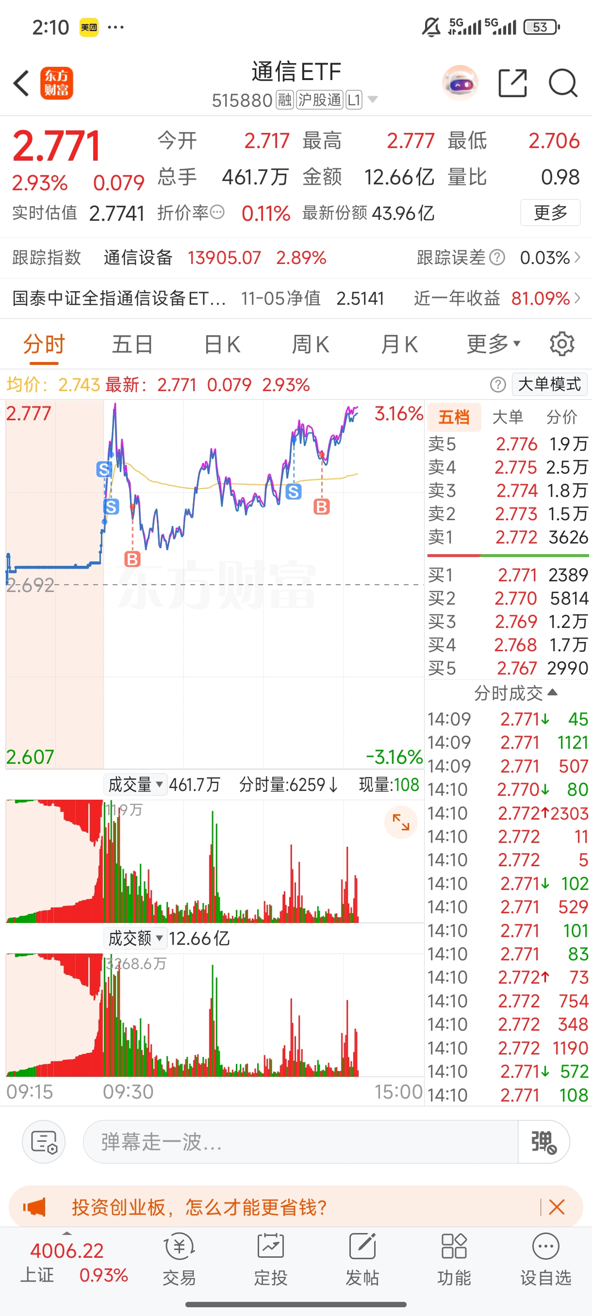 $通信ETF(SH515880)$ 爽过头了
